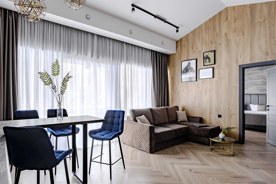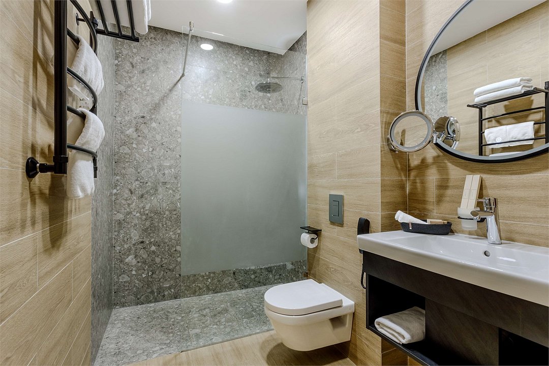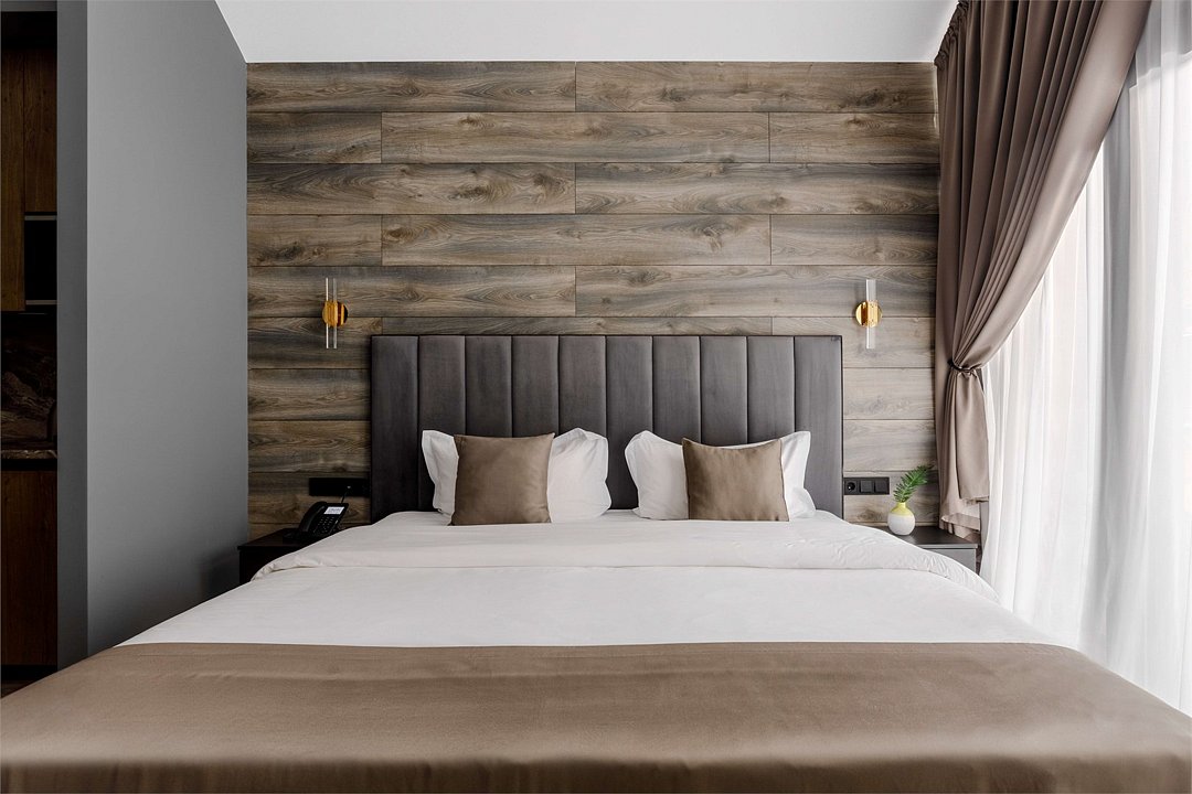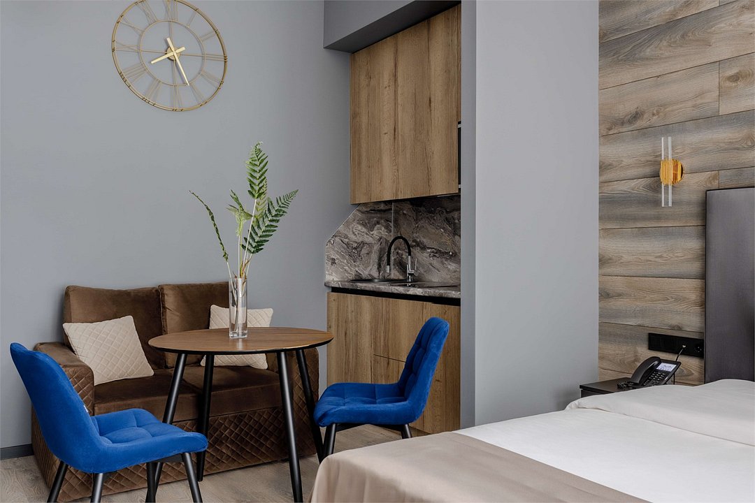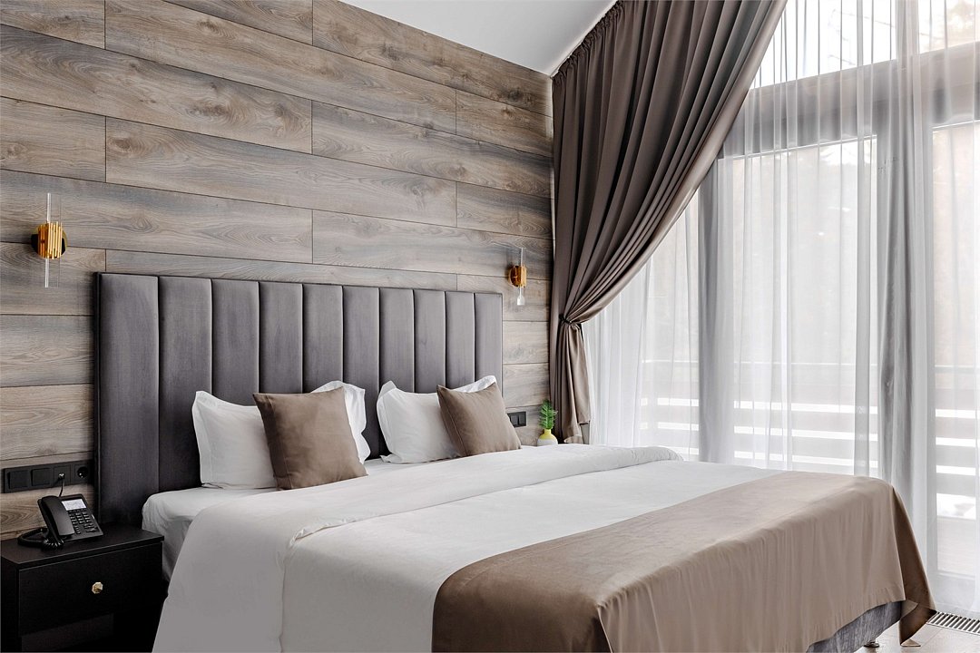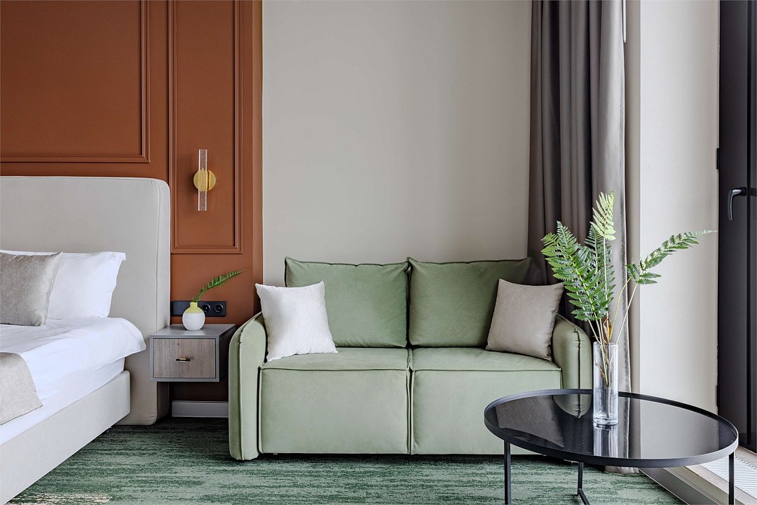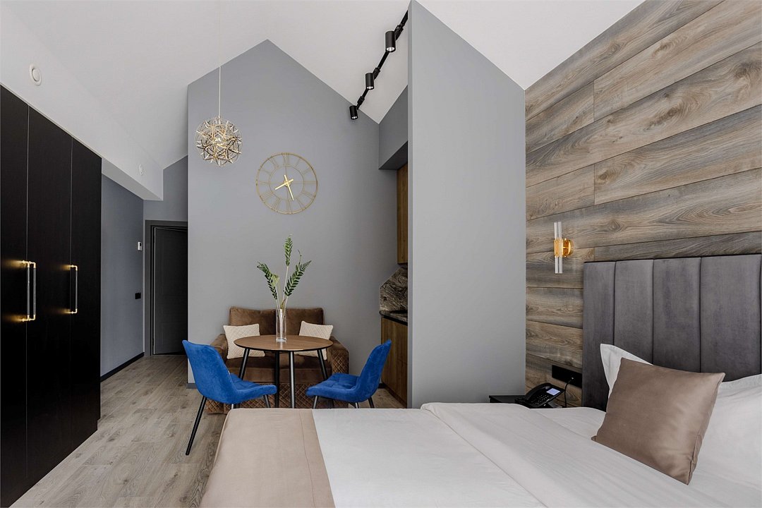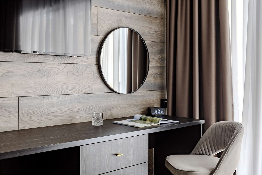 Современный и просторный номер Standart Plus подарит гостям комфорт и приятные эмоции. Из панорамных окон открывается изумительный вид на горы и горнолыжную трассу. Что включает в себя номер? • двуспальная кровать или две односпальные кровати с ортопедическим матрасом • ванная комната с душем • диван-кровать • телевизор SMART TV • высокоскоростной WiFi • электронный cейф • халат, тапочки, набор полотенец • блекаут-шторы • кофемашина • чайная станция • бутилированная минеральная вода • рабочий стол • подогрев полов в ванной комнате • система вентиляции воздуха • весы • фен Площадь каждого из 4 номеров - от 31 до 37 кв.м. Номера расположены в Главном Корпусе гостиничного комплекса Mairi Park Hotel. В номера Standart и Standard Plus разрешено заселение детей от 7 лет. Гостиничный комплекс имеет прямой выход на зеленую горнолыжную трассу Восток-1. Обращаем Ваше внимание на то, что размещение с питомцем в номерах Standart и Standart Plus не предусмотрено. Посещение SPA комплекса и бассейна не входит в стоимость проживания.Услуги и удобства