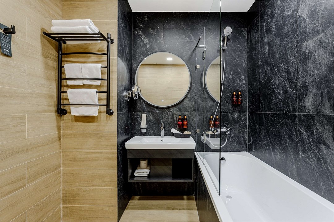 В номере было очень чисто, в ванной хорошая косметика Rituals и все необходимые принадлежности, включая пилочку для ногтей и зубной набор.