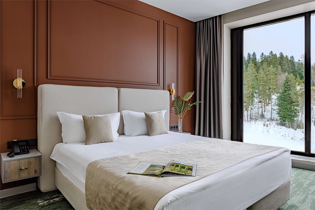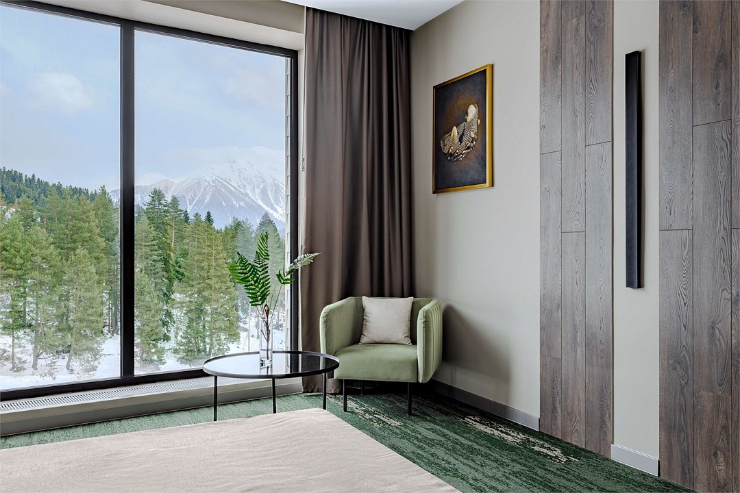 Вилла расположена на территории отеля на склоне горы в окружении пихтового леса. В вилле предусмотрены высокоскоростной доступ в интернет, Smart TV, а также подогреваемый пол, обеденная и рабочая зона. Кухня оснащена всем необходимым для приготовления и хранения пищи. В Вашем распоряжении комфортная кровать king size с ортопедическим матрасом. Ванная комната выполнена в соответствии с ведущими европейскими стандартами, сантехника представлена премиальными марками, а натуральная косметика эксклюзивно поставляется в отель. Вилла оснащена электрической сушилкой для лыжных ботинок и стойкой для хранения снаряжения. Большие панорамные окна позволят насладиться великолепным видом на живописные окрестности и ощутить единение с природой. Горнолыжные трассы и подъемники находятся в пешей доступности от виллы. Имеется прямой доступ к горнолыжной трассе Восток-1. Посещение SPA комплекса и бассейна не входит в стоимость проживания в вилле. Разрешено проживание с питомцем весом до 15 кг. и высотой холки не более 30 см. За услугу размещения питомца взимается плата в размере 2000руб.Услуги и удобства