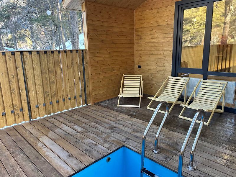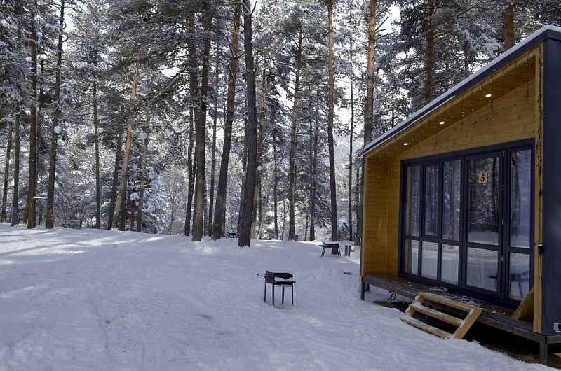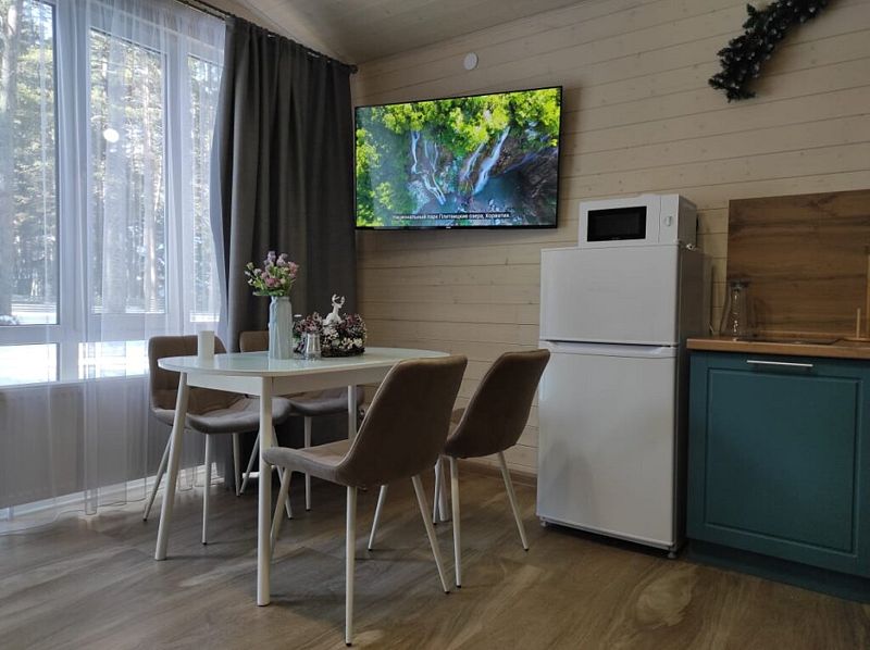 База отдыха также готова предложить своим гостям баню с купелью, детскую площадку с батутами и качелями и снежную горку на территории.