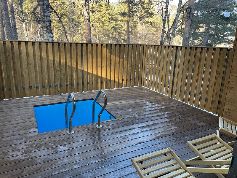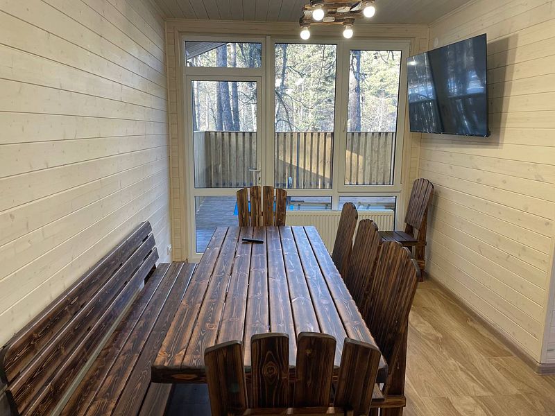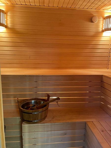 Инфраструктура: купель, зона отдыха, полотенцаМаксимальная вместимость до 8 человек. Отдельно можно приобрести дубовые веники — 400 ₽/шт.