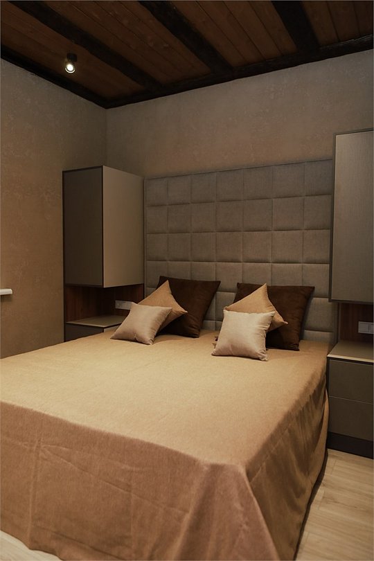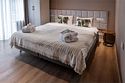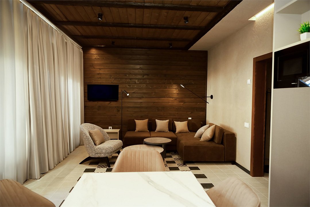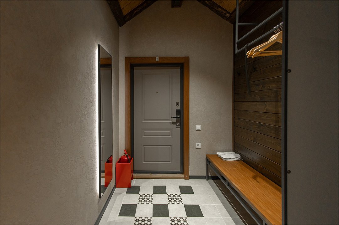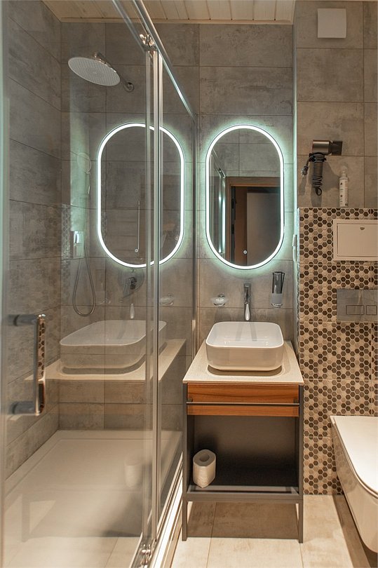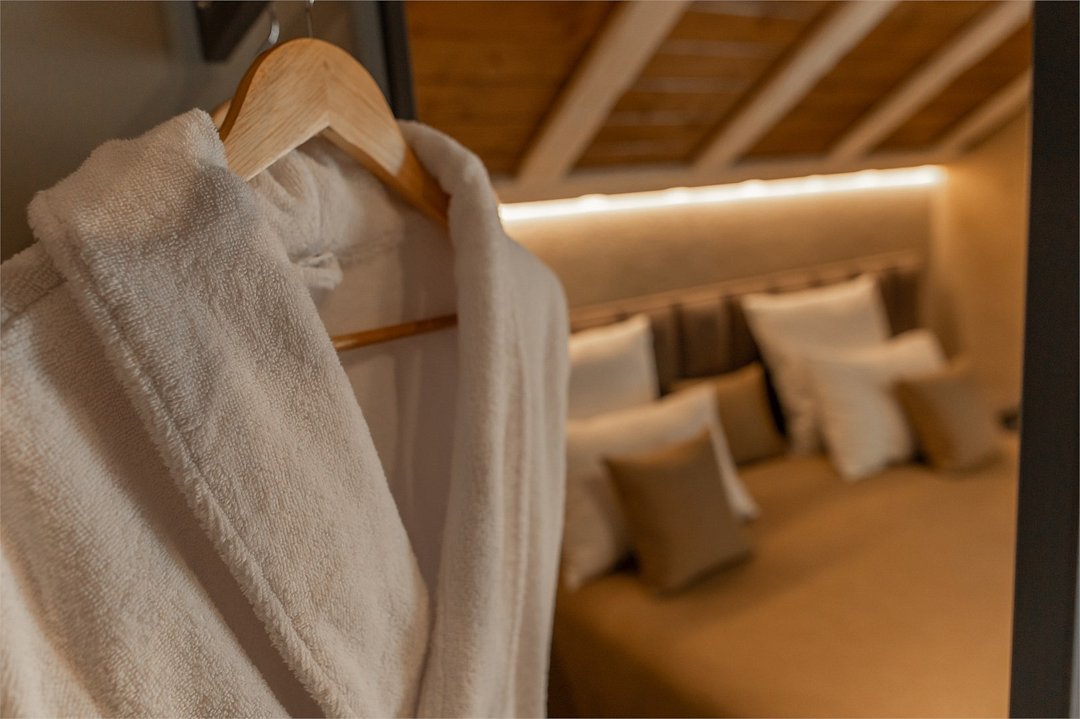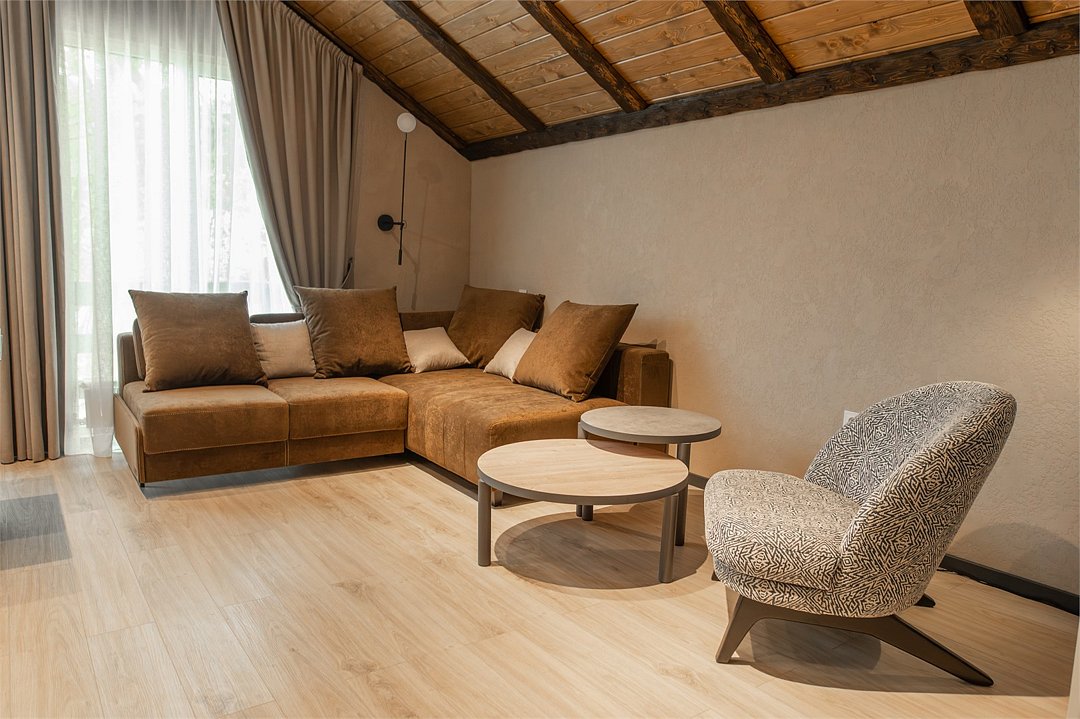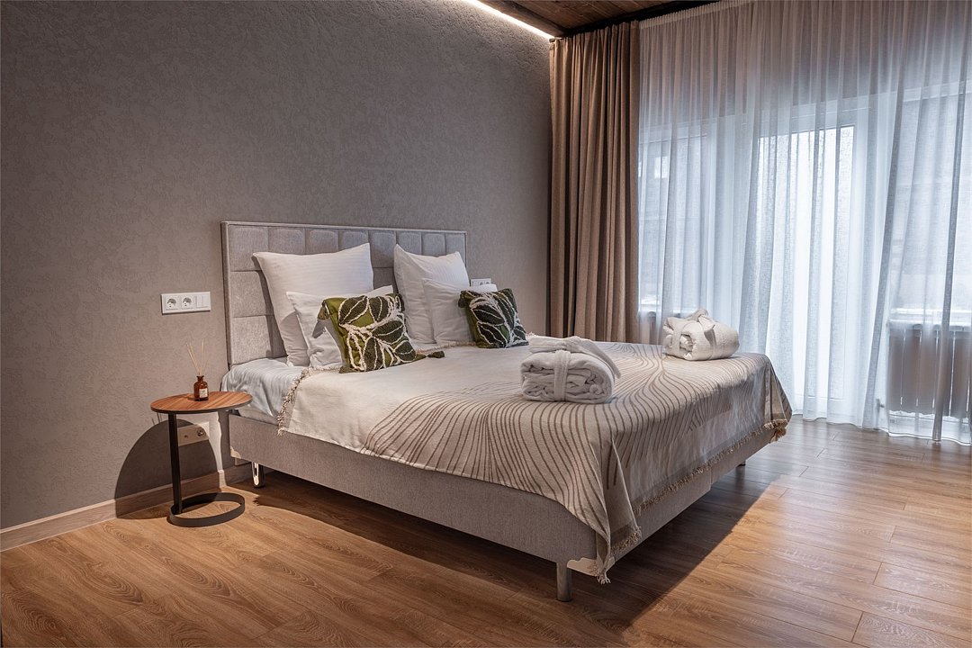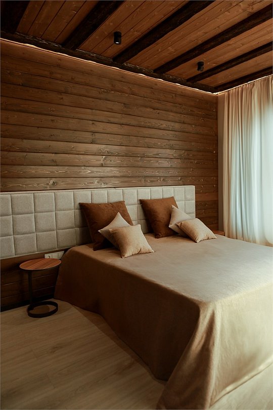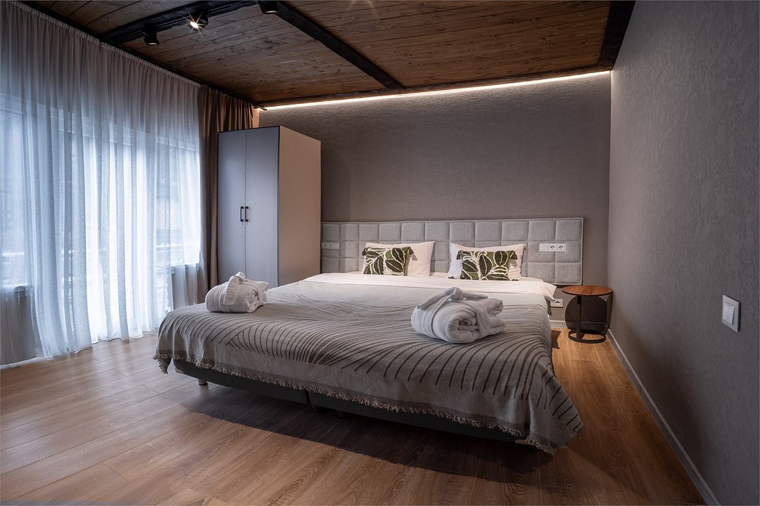 Двухуровневое Шале для раздельного проживания. Каждому жильцу предоставляется отдельный уровень, что гарантирует полную приватность и независимость. Две просторные спальни с кроватями на выбор Double/Twin удобными ортопедическими матрасами, идеальное пространство для отдыха и сна. Выход на террасу: наслаждайтесь видами природы прямо из своего дома. Балкон. Кухня-гостиная: кухня оснащена всей необходимой техникой, кофемашина, посудомоечная машина, посуда, здесь же расположена уютная гостиная с диваном и столовой зоной. Гардеробная: удобное пространство для хранения вещей, стиральная машина, утюг и гладильная доска. Санузел с душевой кабиной. Комфорт вашего пребывания: -SMART TV; -Wi-Fi; - чайный набор; - фен; - все банные принадлежности; - косметические и гигиенические средства.Услуги и удобства