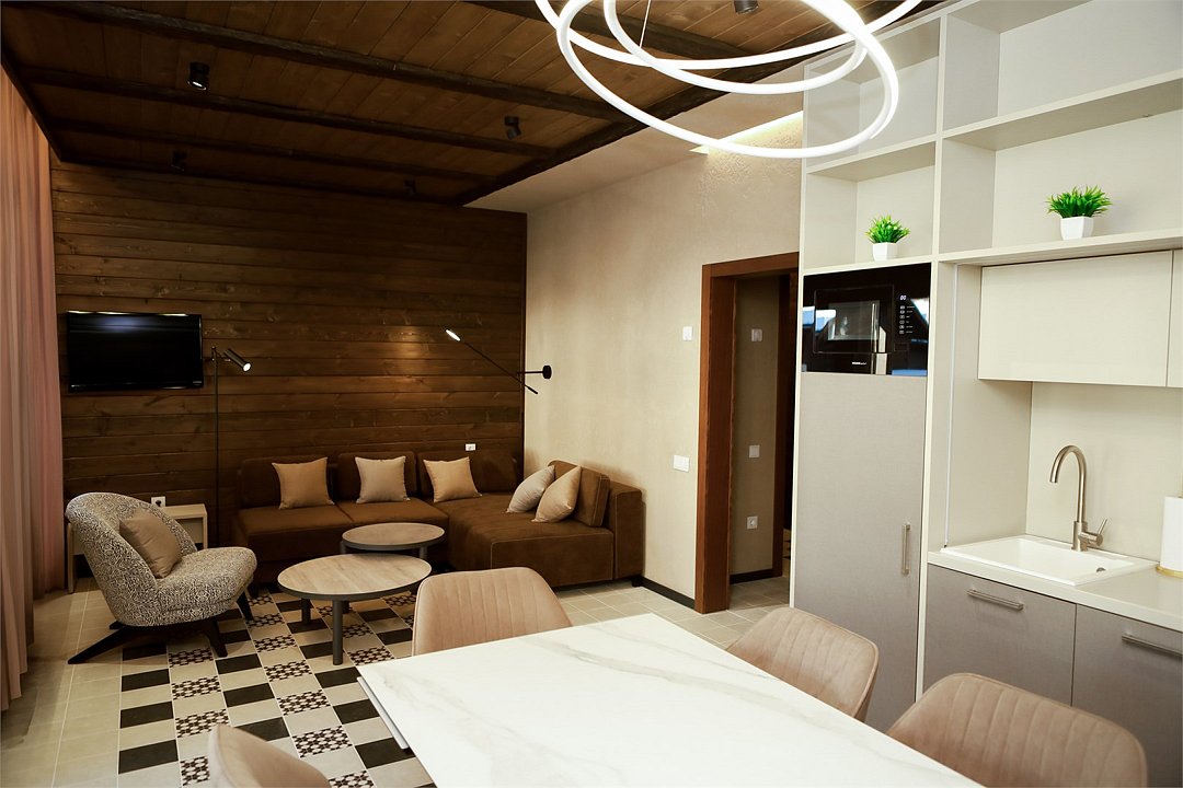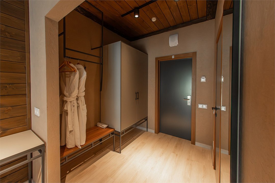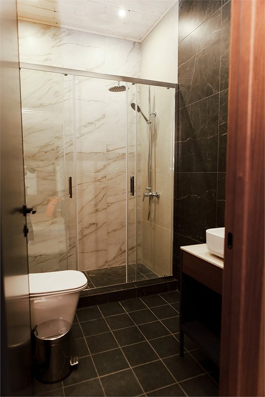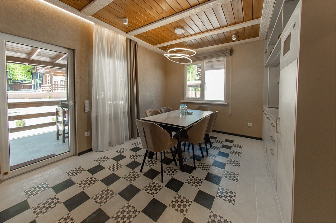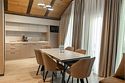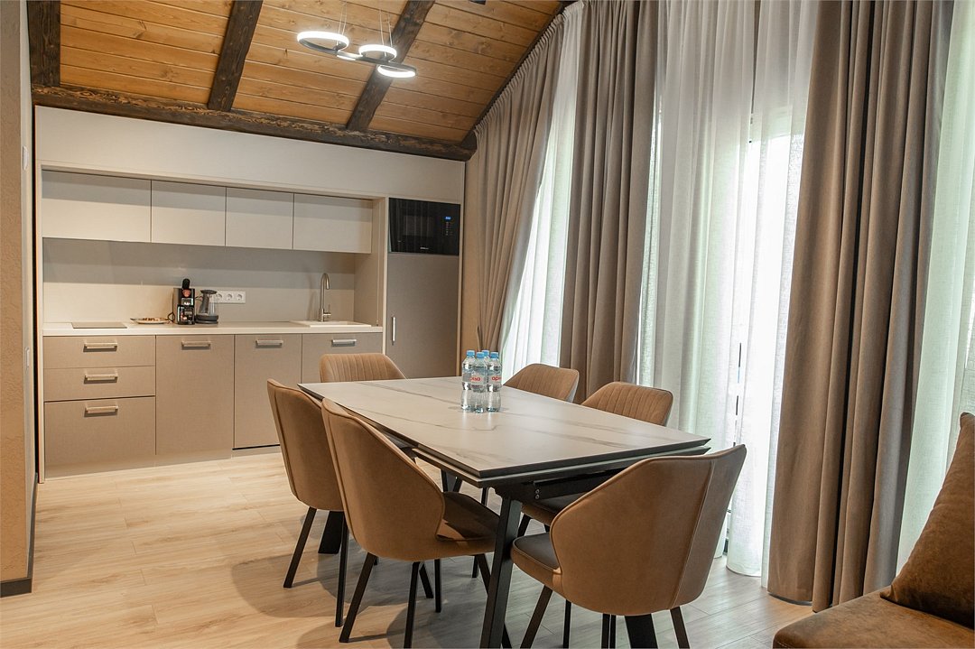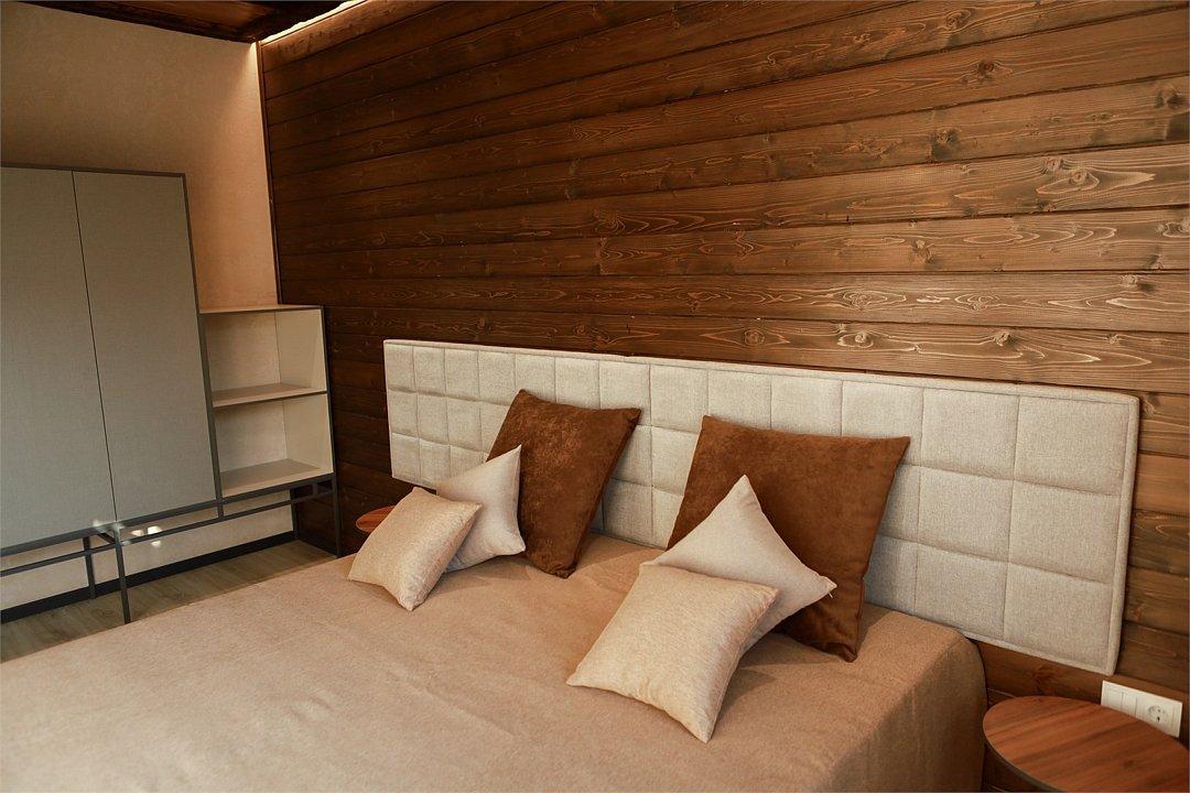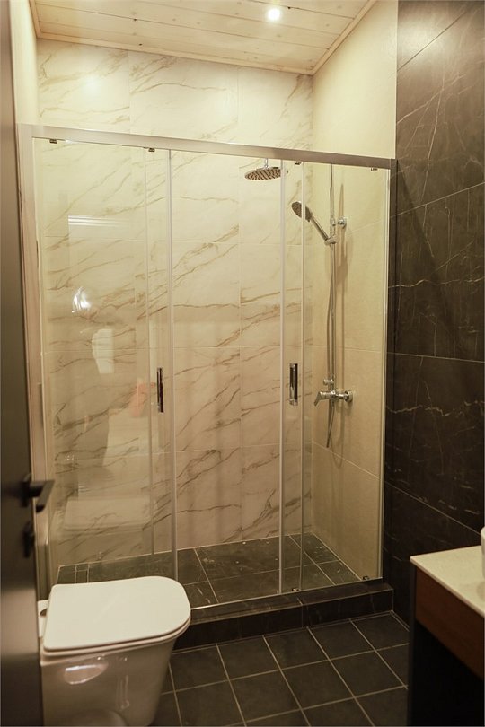 Наш роскошный двухэтажный Шале предлагает идеальный баланс между домашним теплом и элегантностью гостиничного сервиса. Первый этаж: Кухня-гостиная: кухня оснащена всей необходимой техникой, кофемашина, посудомоечная машина, посуда, здесь же расположена уютная гостиная с диваном и столовой зоной. Гардеробная: удобное пространство для хранения вещей, стиральная машина, утюг и гладильная доска. Санузел с душевой кабиной. Выход на террасу: наслаждайтесь видами природы прямо из своего дома. Теплые полы: по периметру всего дома. Второй этаж: Две просторные спальни с кроватями на выбор Double/Twin удобными ортопедическими матрасами, идеальное пространство для отдыха и сна. Балкон. Санузел с душевой кабиной. Комфорт вашего пребывания: -SMART TV; -Wi-Fi; - чайный набор; - фен; - все банные принадлежности; - косметические и гигиенические средства.Услуги и удобства