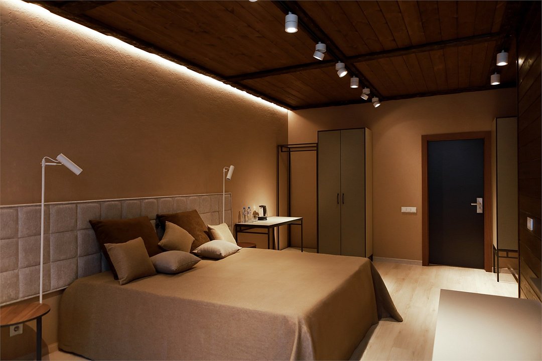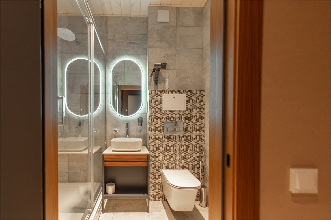 Wi-Fi, фен, электронные замки, утюг, душевая кабина, теплый пол, халаты, банные полотенца, тапочки, косметические средства, кровать «King size», гладильная доска, ортопедический матрас, шкаф для одежды, вешалки, письменный стол, багажная тумба, зеркало, набор посуды, обслуживание номеров, сейф, чайник, унитаз, раковина, питьевая вода, отопление, отдельный вход в номер, плиточное покрытие, вид во двор, кухонная посуда, стаканы, столовые приборы, стул, туалет, панорамные окна, сушилка для белья, мини-холодильник, вид на горы, телевизор со Smart TV, теплые полы, вид на бассейн, гигиенический душ, уборка номера, набор для приготовления чая и кофе, вешалки-плечики, бутилированная вода, мыло, затемняющая штора, окна от пола до потолка, зеркало в полный рост, открытый шкаф, прачечная (за дополнительную плату), дождевой и ручной душ, можно с питомцами, лежанка, миска, тропический душВ гостиничном номере