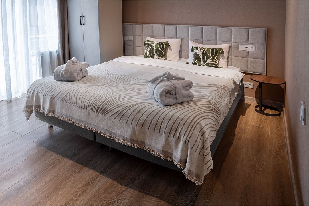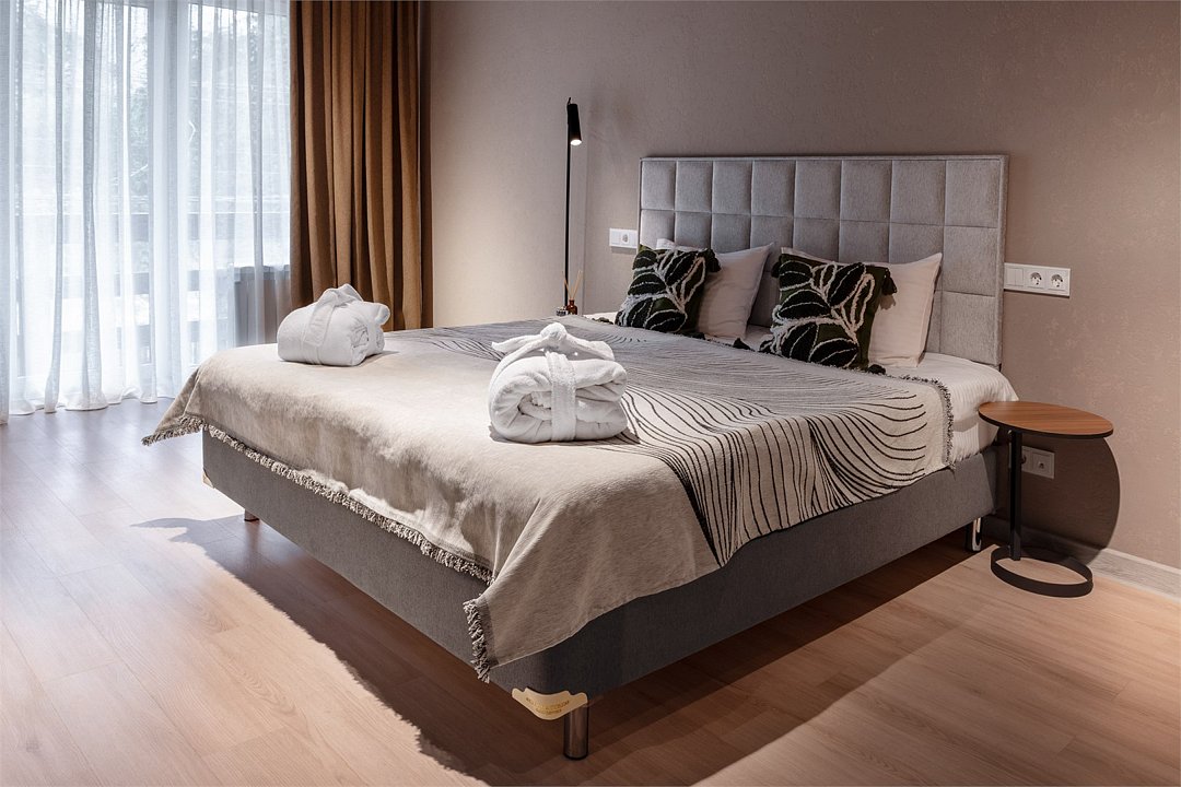 Позвольте представить вашему вниманию превосходный Family Room в главном корпусе нашей резиденции, созданный для истинного комфорта и вдохновения. Номер включает две спальни с индивидуальной кроватью, с выбором комфортной конфигурации спального места: Double Bed/Twin Beds -прикроватные тумбы; -SMART TV; -Wi-Fi; -письменная консоль; -холодильник; -чайный набор; -банные принадлежности; -косметические и гигиенические средства; -фен; -номер оснащён подушками двух размеров для Вашего удобства;Услуги и удобства