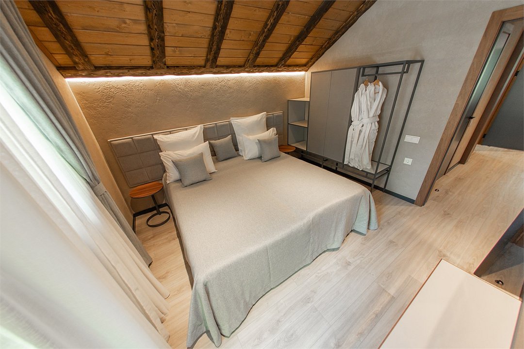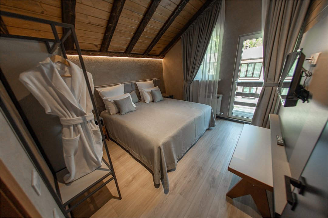 Приглашаем вас окунуться в особую атмосферу Business Room — изысканного номера главного корпуса, расположенного в самом сердце живописных горных пейзажей. Наличие сейфа гарантирует безопасность личных вещей. Удобный рабочий уголок позволит продуктивно поработать удаленно. -Балкон; -прикроватные тумбы; -SMART TV; -Wi-Fi; -холодильник; -чайный набор; -банные принадлежности; -косметические и гигиенические средства; -фен; -номер оснащён подушками двух размеров для Вашего удобства;Услуги и удобства