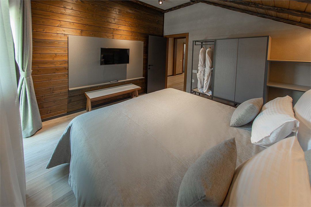 Wi-Fi, фен, ванна или душевая кабина, теплый пол, халаты, банные полотенца, терраса, две односпальные или большая двуспальная кровать, шкаф для одежды, чайник, две кровати «King size», вид на горы, телевизор со Smart TV, вид на лес, можно с питомцами, бассейнВ шале