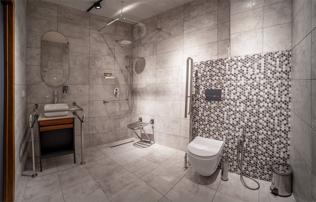 Наш отель предлагает комфортные условия для всех категорий наших гостей, включая людей с ограниченными физическими возможностями. Для вашего удобства мы подготовили специальный номер, оснащённые всеми необходимыми удобствами и приспособлениями. Основные особенности номера: Просторный вход: Широкий дверной проем обеспечивает лёгкий доступ внутрь помещения на колясках любых размеров. Специальные поручни: Поручни установлены возле унитаза, душа и раковины для поддержки и безопасности. Регулируемые элементы интерьера: Раковина, душевые лейки и смесители расположены на удобной высоте, доступной для пользования гостями на креслах-колясках. Пандусы и низкие пороги: Во избежание препятствий при перемещении внутри номера отсутствуют высокие пороги и ступени. Доступность санузла: Санузел оснащен широкой ванной с возможностью установки специального сиденья, позволяющего комфортно пользоваться водными процедурами. Комфортное освещение: Осветительные приборы размещены таким образом, чтобы обеспечить равномерное освещение всего пространства комнаты. Поддержка сотрудников отеля: Наши сотрудники готовы оказать любую помощь, необходимую вам для комфортного пребывания. Мы делаем всё возможное, чтобы пребывание в нашем отеле было комфортным и безопасным для каждого нашего гостя!Услуги и удобства