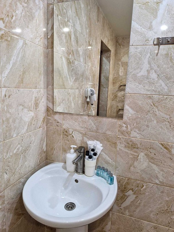 Ванная комната, фен, набор банных принадлежностей — все, что нужно для комфортного проживания.