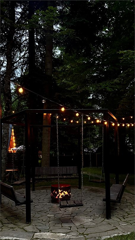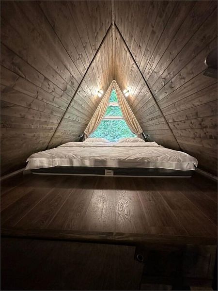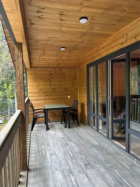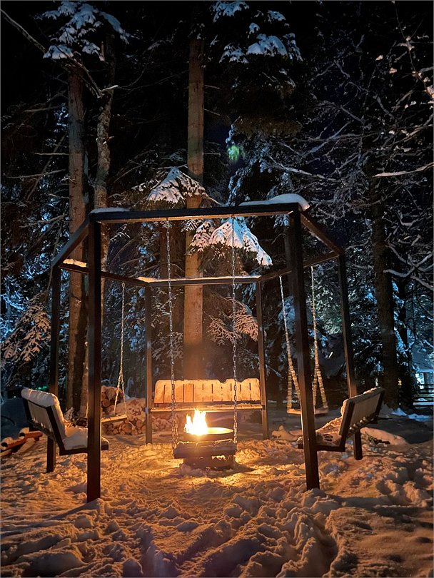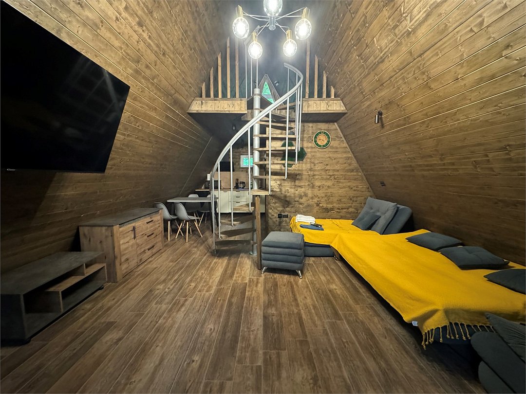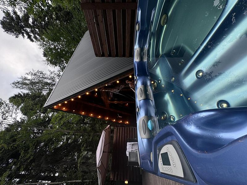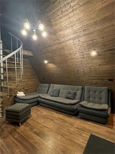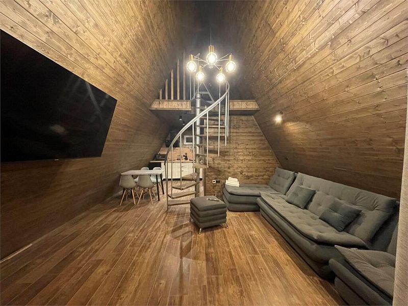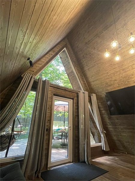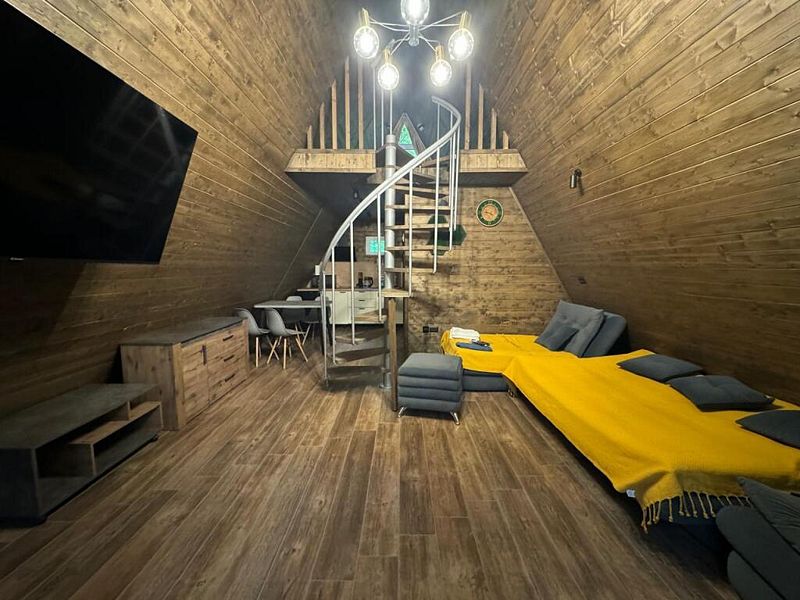 Новый коттедж A-Frame со своим СПА бассейном-джакузи до 40 градусов подогрева! Расположен на территории гостевого комплекса, но при этом огорожен своей территорией! Красивый многовековой лес, вдали от остальных домов. Дом оборудован всем необходимым для комфортного отдыха, своя терраса с мебелью и качелей, зона для барбекю. Дом оборудован уличным профессиональным Спа-бассейном с подогревом воды круглосуточно с функциями джакузи, где вы можете купаться и наслаждаться атмосферой окружающей природы круглый год. На территории комплекса имеется стоянка, прокат лыж и бордов, костровая зона, детская площадка, (баня на дровах с бассейном оплачивается отдельно)Услуги и удобства