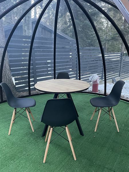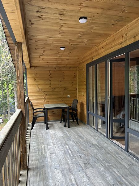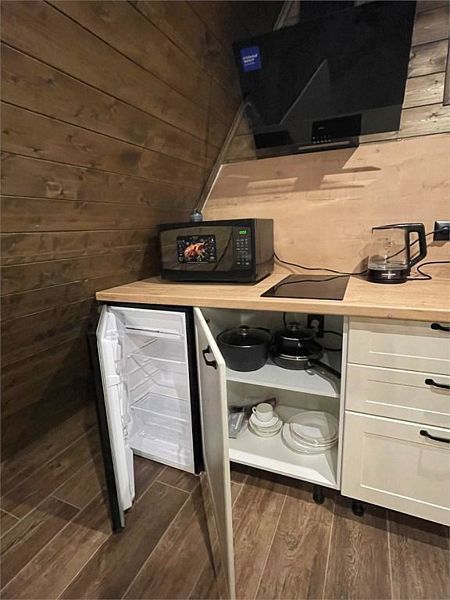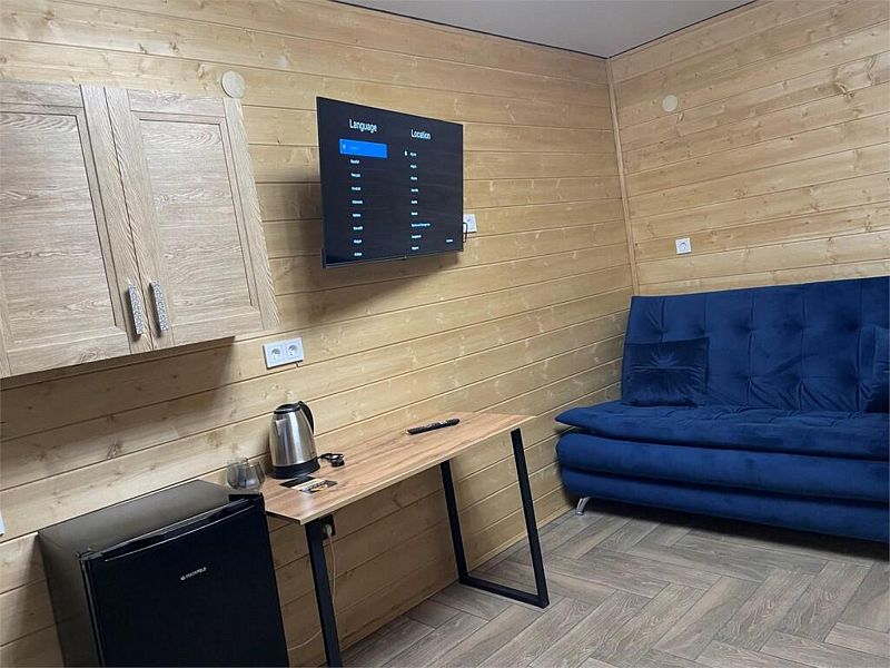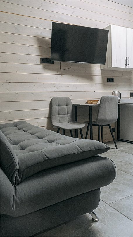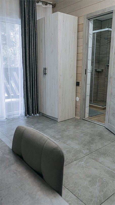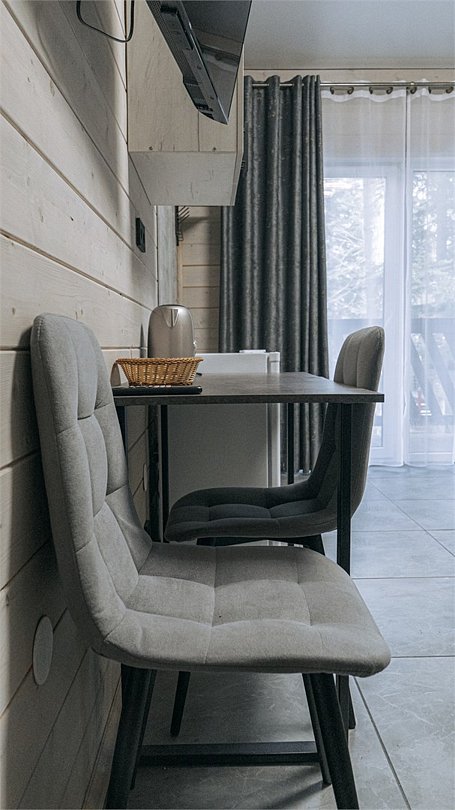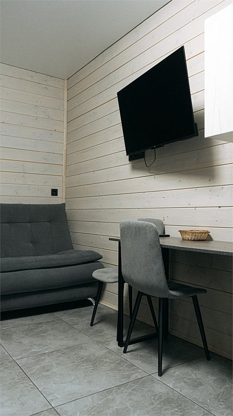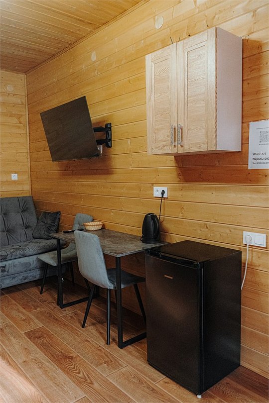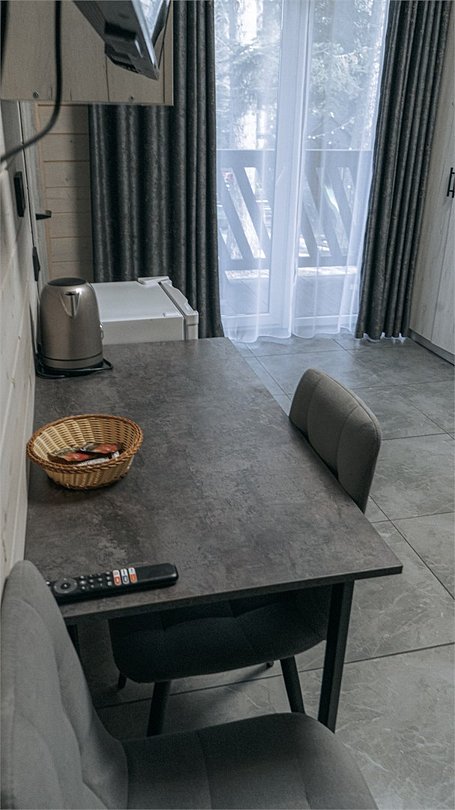 Wi-Fi, светильник, фен, микроволновая печь, душевая кабина, санузел, водонагреватель, теплый пол, банные принадлежности, банные полотенца, тапочки, балкон, терраса, кровать «King size», вешалки, обеденный стол, обслуживание номеров, чайник, унитаз, питьевая вода, обеденная зона, отопление, душ, центральное кондиционирование, ламинат, стаканы, стул, туалетные средства, мангал, принадлежности для барбекю, панорамные окна, диван-кровать, мини-холодильник, мини-кухня, телевизор со Smart TV, теплые полы, номер для некурящих, вид на лес, межкомнатная дверь, уборка номера, туалетные принадлежности премиум-класса, мыло, без питомцевВ гостиничном номере
