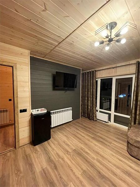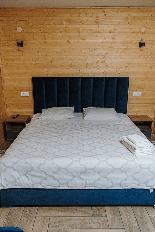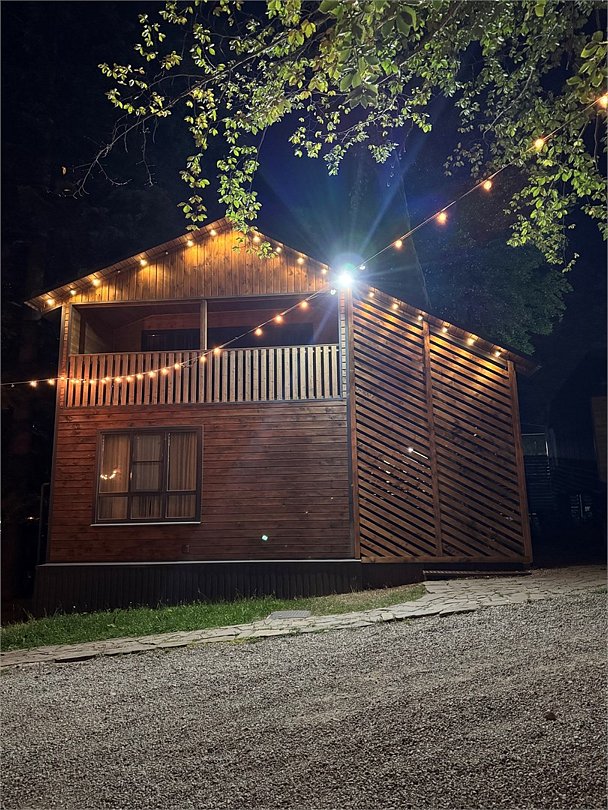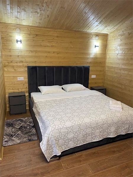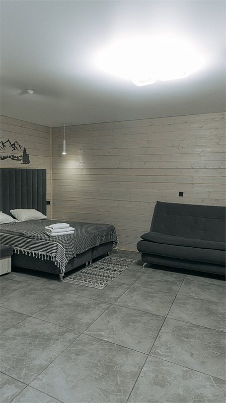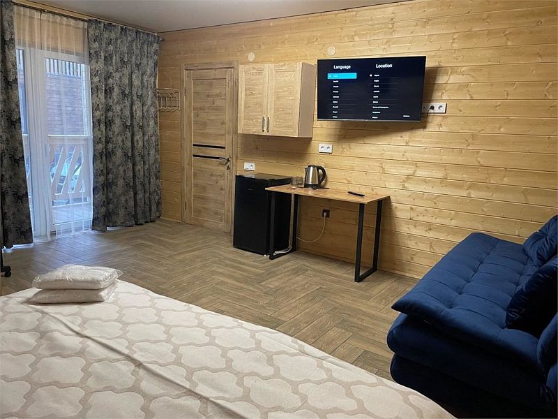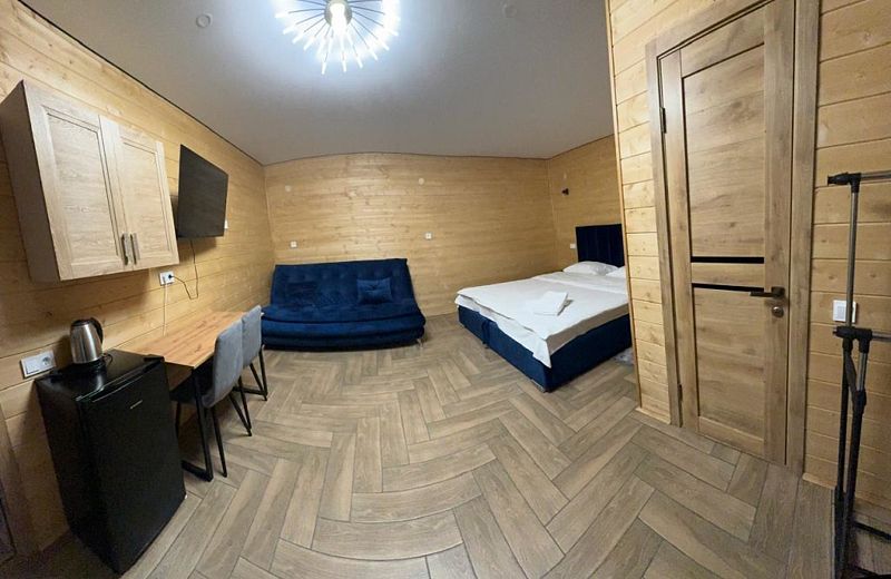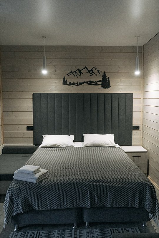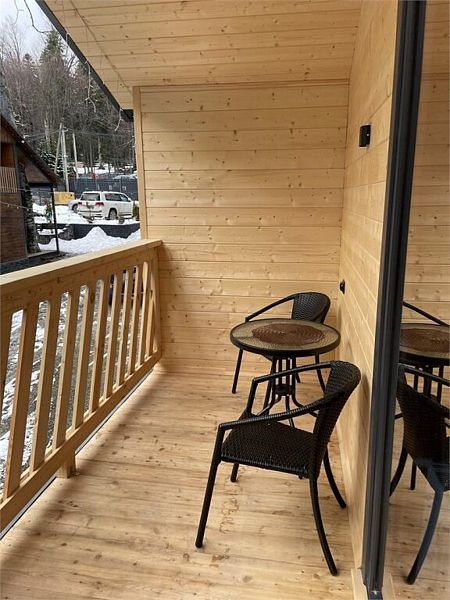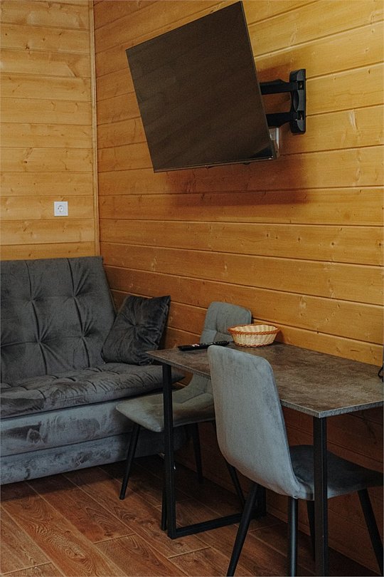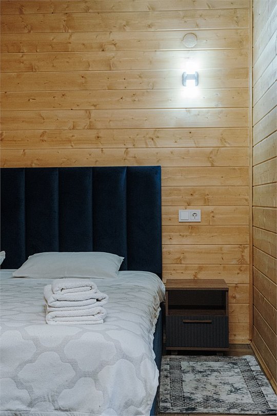Новые номера со всеми удобствами для комфортного проживания. Свой санузел, теплые полы, свой балкон, посуда, чайник, холодильник, большая кровать, раскладной диван. Столовая, детская площадка, зона для костра, парковка, wi-fi входит в стоимость номера. На территории есть баня на дровах и чан за отдельную плату.Услуги и удобства