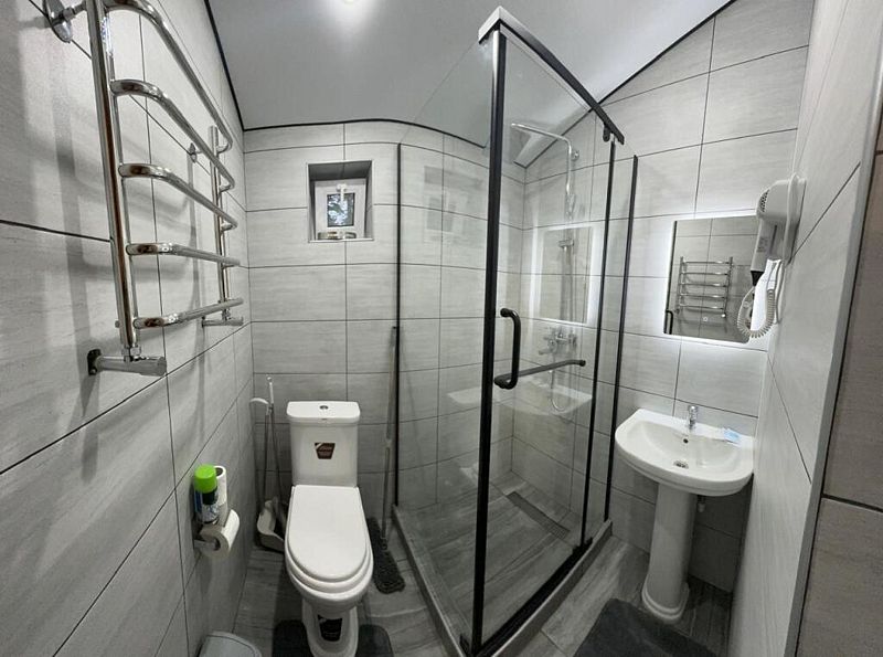 трехместный номер имеет одну односпальную и двухярусную кровать свой отдельный вход и свой санузел, на первом этаже кухню со столовой, во дворе парковка и мангалУслуги и удобства