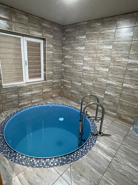 Максимальная вместимость до 8 человек.Своя предбанная зона с посудой, купель, большая парилка.