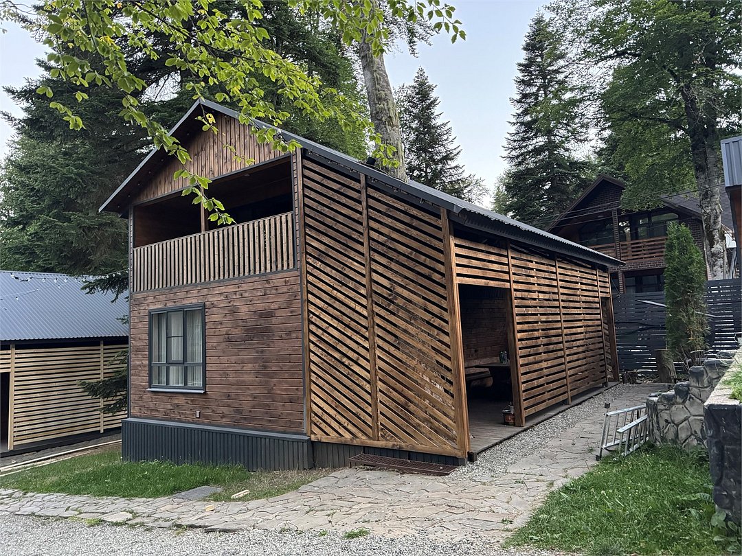 Экосфера Архыз, коттедж состоит из двух этажей, на каждом этаже есть свой санузел, спальня и зал, перед домом есть большая терраса и зона для барбекю, в доме теплые полы, индивидуальное отопление, своя посуда, кухонная зона, печь газовая, обеденный стол и техника включая стиральную машину, баня на дровах с бассейном оплачивается и бронируется отдельно при заселенииУслуги и удобства