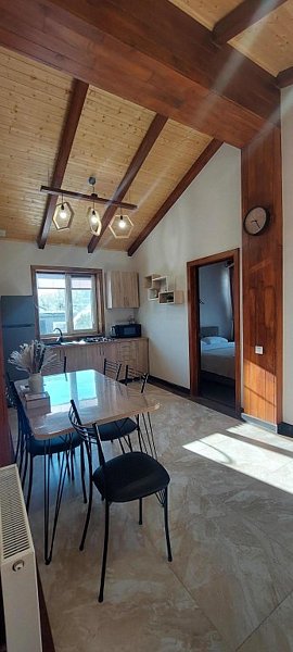 Вас ждут просторные апартаменты и уютные студии, оснащённые всем необходимым для комфортного проживания, а также захватывающие виды гор!
