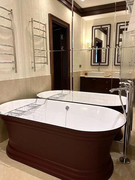 3 отдельные комнаты на клубном этаже, с собственной общей гостиной. Площадь номера - 180 кв. м. Роскошный трехкомнатный номер с отдельным входом- это прекрасное решение для большой семьи, дружной компании и ценителей приватного отдыха. В номере общая гостиная с кухонной и столовой зонами. Каждая комната оснащена как отдельный номер. В каждой комнате: кофе-машина, мини-холодильник, гладильные принадлежности, фен, косметические средства, полотенца, уютные халаты и тапочки, климат-контроль, сейф, телефон, Wi-Fi, питьевая вода. Кухонная зона оборудована всем необходимым для приготовления еды и приятного времяпровождения.Услуги и удобства