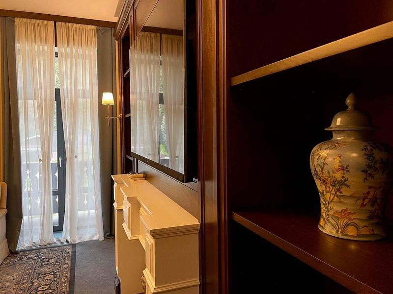 телевизор, Wi-Fi, интернет, телефон, IP-телефон, фен, электронные замки, кофемашина, утюг, ванная комната, душевая кабина, ванна, халаты, тапочки, гигиенические средства, балкон, двуспальная кровать, диван, шкаф для одежды, вешалки, зеркало, комод, эксклюзивная мебель, мини-бар, сейф, унитаз, питьевая вода, душ, тумба, туалетные средства, туалет, диван-кровать, внутренний телефон, телевизор с плоским экраном, вид на лес, пуфик, рабочий стол, гигиенический душ, уборка номера, набор для приготовления чая и кофе, вешалки-плечики, бутилированная вода, СПАВ гостиничном номере