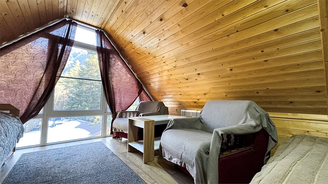 спутниковое телевидение, Wi-Fi, холодильник, фен, плита для приготовления пищи, микроволновая печь, обогреватель, ванная комната, душевая кабина, ванна или душевая кабина, санузел, банные полотенца, тапочки, косметические средства, две односпальные кровати, две односпальные или большая двуспальная кровать, диван, стулья, обеденный стол, ковер, кухня, чайник, унитаз, раковина, мягкая мебель, питьевая вода, обеденная зона, гостиная зона, кресло, кухонная посуда, стаканы, кухонная утварь, столовые приборы, стол, туалетные средства, мангал, москитная сетка, вид на горы, телевизор со Smart TV, вид на лес, два дивана-кровати, набор для приготовления чая и кофеВ коттедже