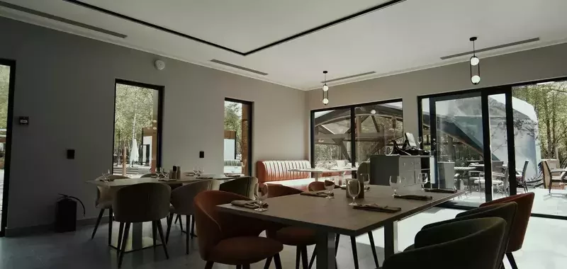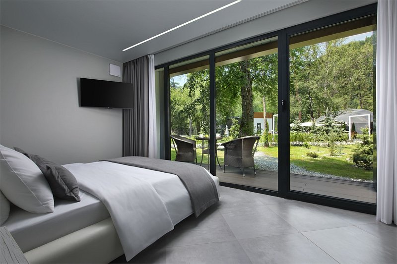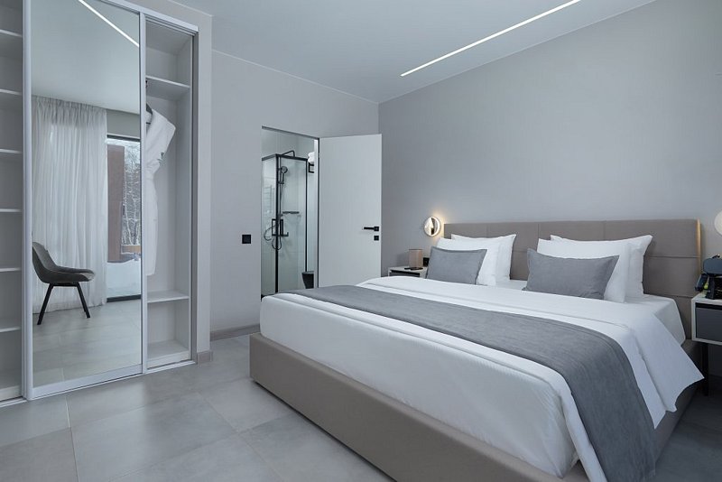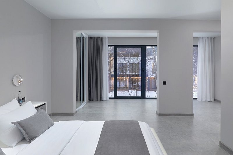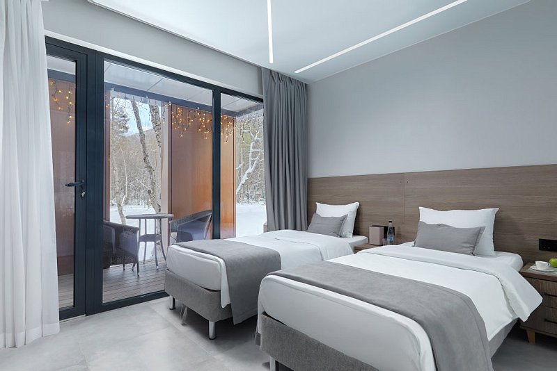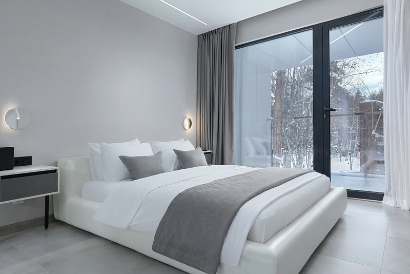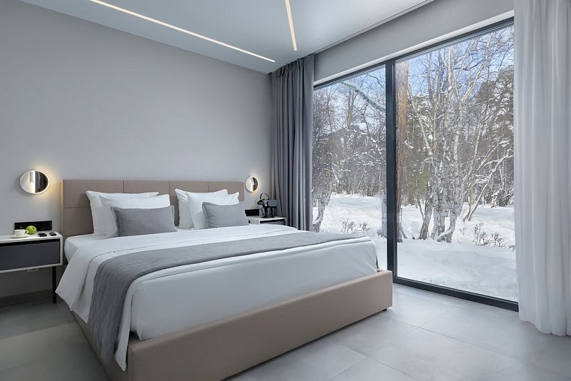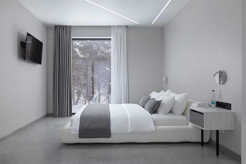 Каждая деталь интерьера была задумана для максимально комфортного отдыха, подчеркивающего индивидуальность выбора гостей. Элегантность и лаконичность дизайна создают идеальную пару в сочетании с атмосферой уединения в окружении густых крон деревьев.