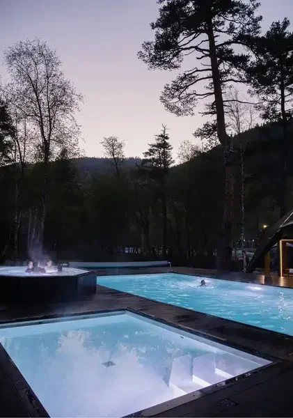 Не упустите возможность расслабиться в трех открытых подогреваемых бассейнах с невероятным видом на горные пейзажи. Для любителей авторских коктейлей предусмотрен бар с сезонной коллекцией напитков, а для проведения закрытых мероприятий и фуршетов разработаны специальные предложения.