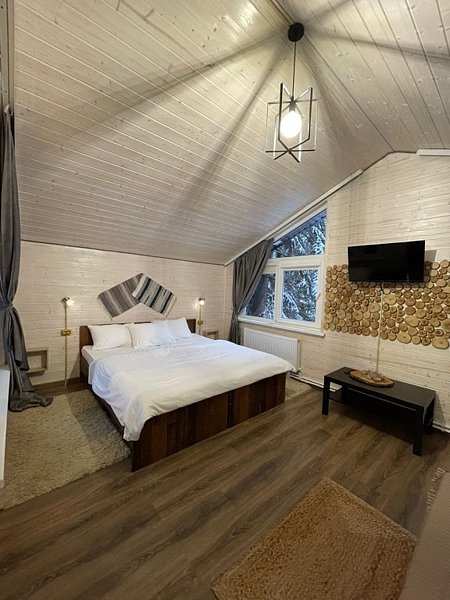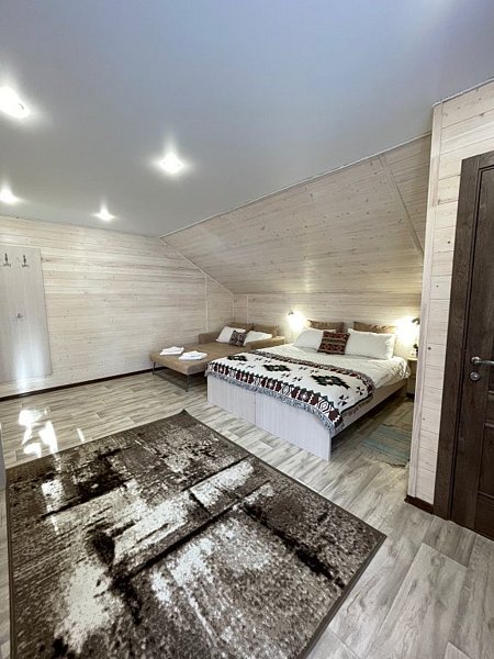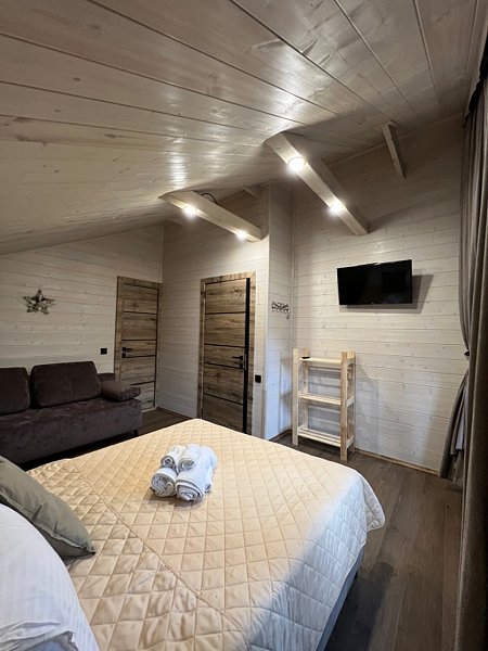 Вас ждёт двухэтажный дом с уютными номерами и коттеджи для больших компаний, которые идеально подойдут для семейного отдыха или отдыха с друзьями.