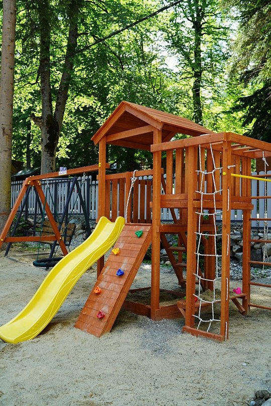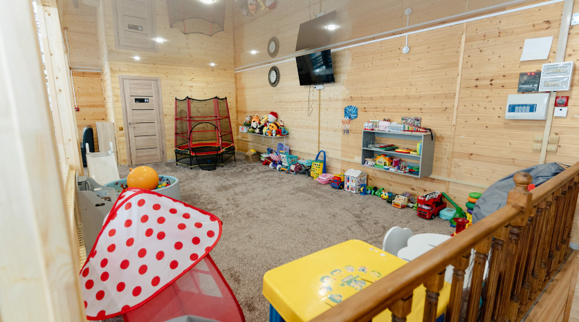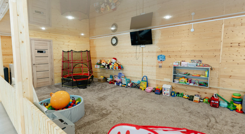 Детям и их родителям придется по душе детская игровая зона, оборудованная батутом и игрушками.