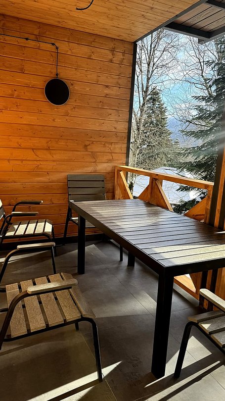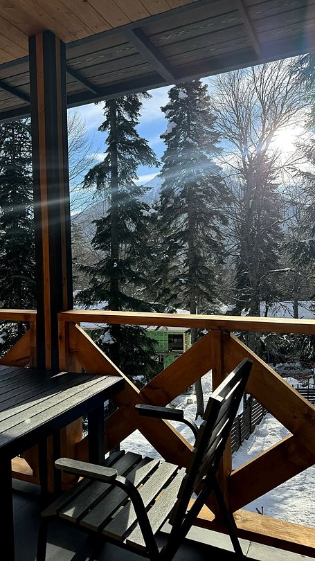 Короткий отпуск с друзьямиРайский уголок действительно райскийЗамечательное место, в котором было весело и комфортно всей нашей компании. И взрослым и детям. Чистые, уютные коттеджи со стильным ремонтом. Белоснежное белье. Полностью укомплектованная кухня-гостинная с большим столом, где можно собраться всей компанией. Включены разнообразные и вкусные завтраки по системе «шведский стол». Не надо ломать голову где обедать и ужинать: кафе на территории эко-отеля вкусно готовит. Можно заказать еду в коттедж. Есть мангал у коттеджа. Рядом, в пешей доступности, находится бугельная трасса для начинающих лыжников. Вам надо взять с собой только компанию и хорошее настроение! Все остальное есть в эко-отеле! Рекомендую от души! Вернемся еще не раз!