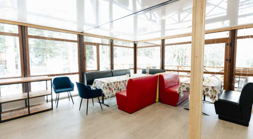На территории эко-отеля есть уютное кафе.