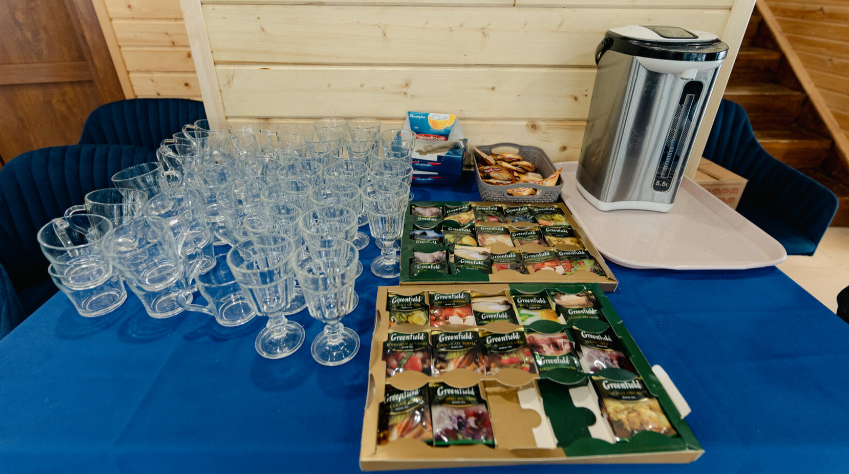 - комплимент — травяной чай и мёд