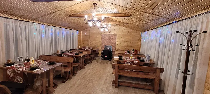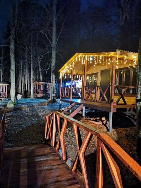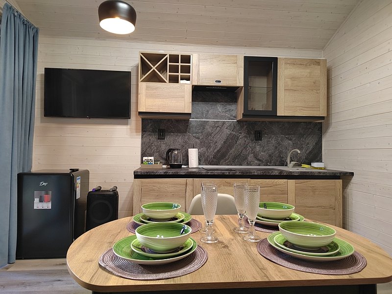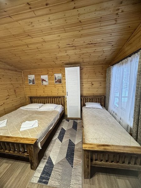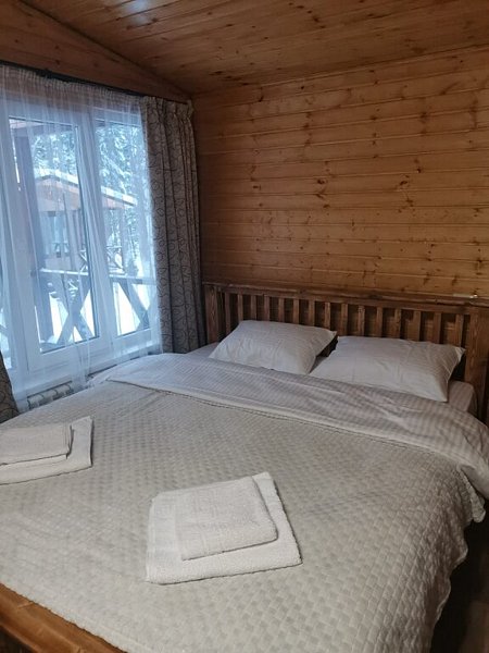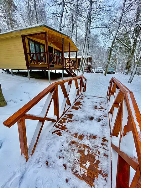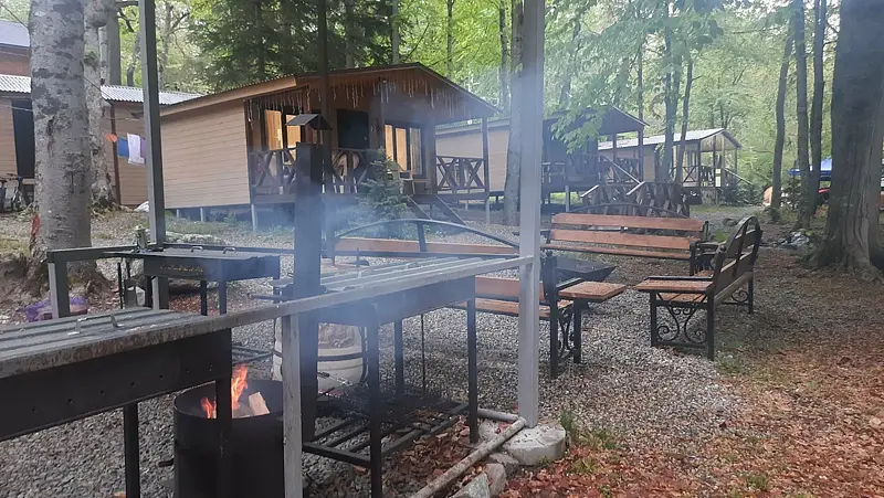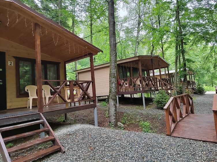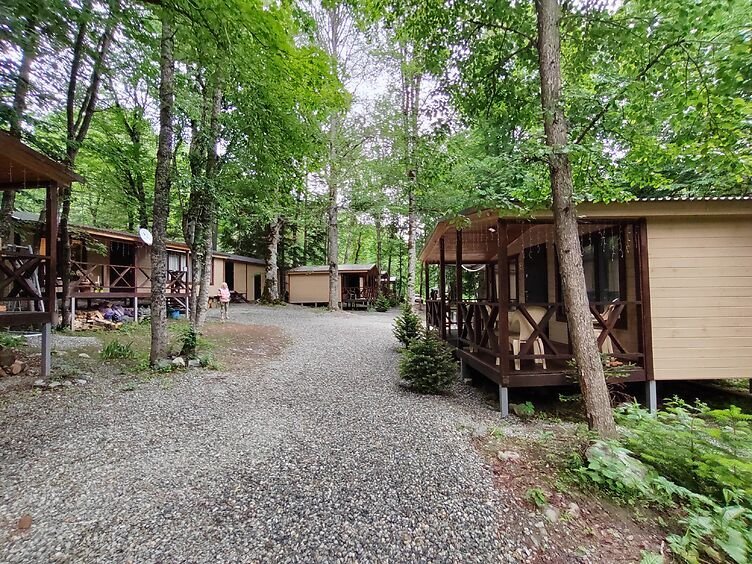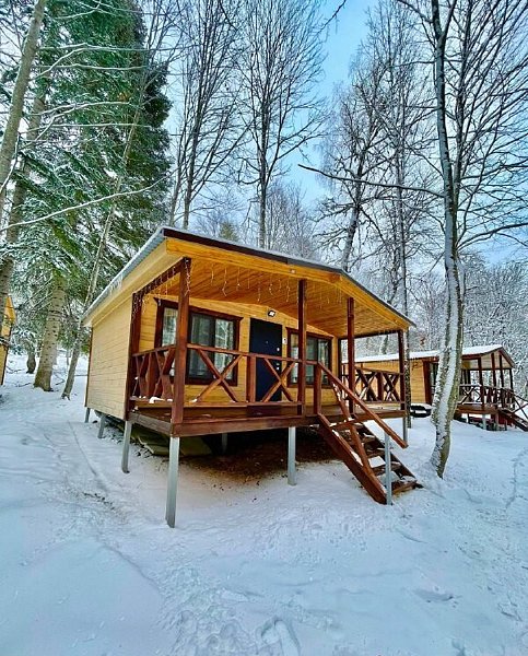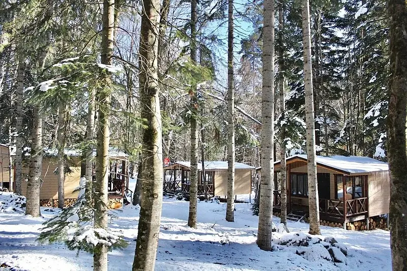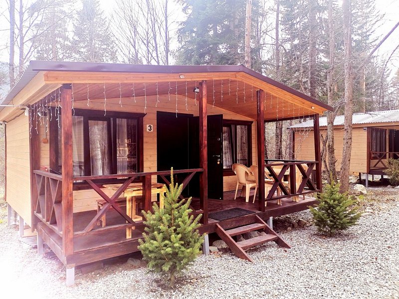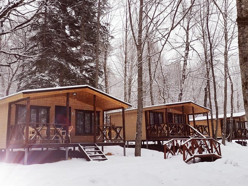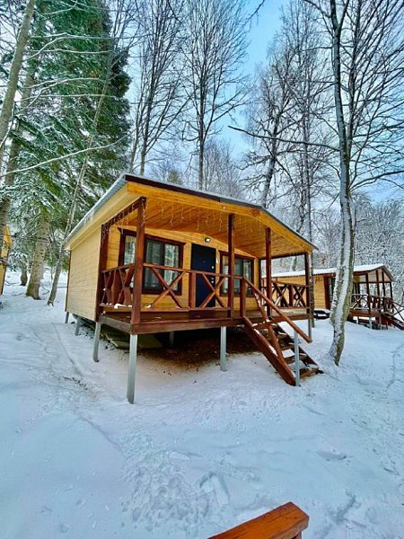 На территории оборудованы уютные домики для проживания, большая мангальная зона, Wi-Fi, общая кухня-столовая, помещение для хранения и сушки горнолыжного снаряжения, а также бесплатная парковка.