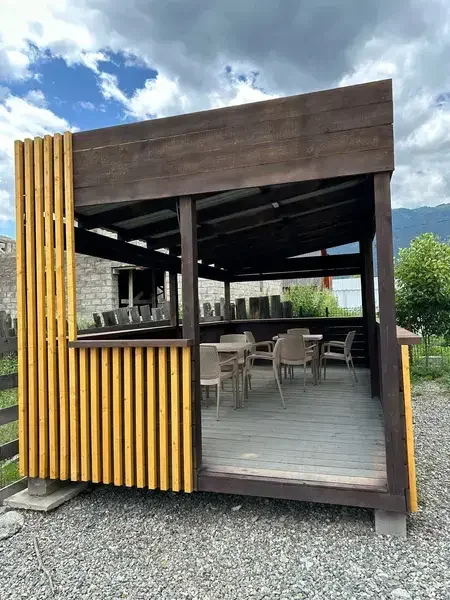 На территории обустроена закрытая парковка для путешествующих на автомобиле. Также имеются меблированные беседки и мангальная зона.
