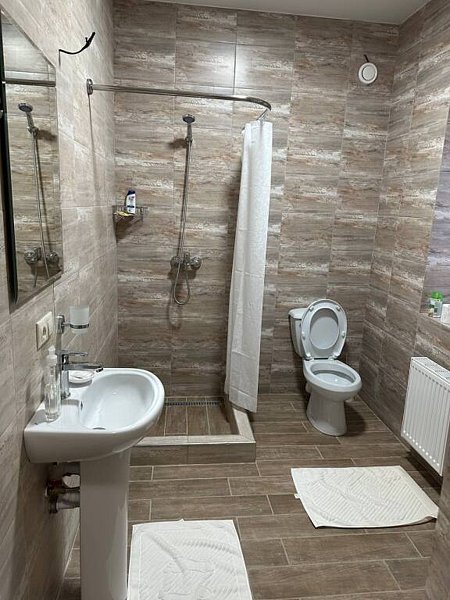 В номере имеется своя веранда, кухня со всей необходимой техникой и посудой. Свой отдельный санузел со стиральной машиной. В номере есть Wi-Fi, климат-контроль с датчиком и управлением в вашем номере. Имеются дополнительные подушки и одеяла.