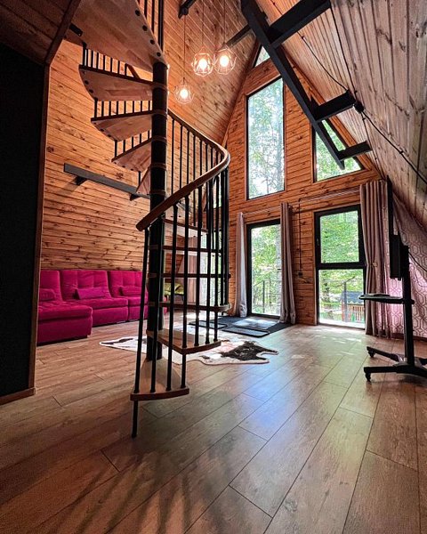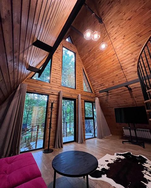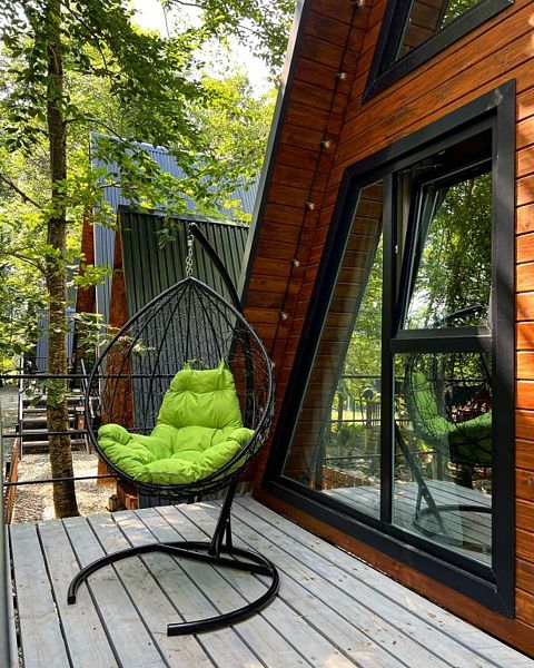 Экодома в стиле А-фрейм с двумя этажами (!не путать с маленькими А-фрейм!), верандой и зоной барбекю.