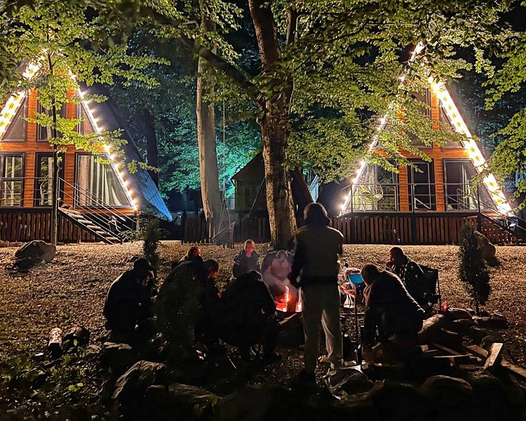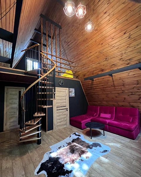 Вас ждёт комфортный и интересный отдых: уютный глэмпинг типа А-фрейм, посещение бани, пикники, барбекю и экскурсии. Можно арендовать горнолыжное снаряжение.