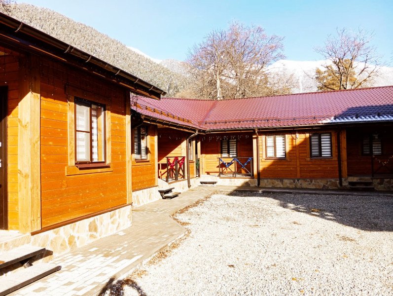 Здесь предлагаю недорогие номера различной вместимости и уютные шале, а также баню на дровах и прокат в шаговой доступности. Для удобства гостей специально оборудовано помещение для сушки обуви.