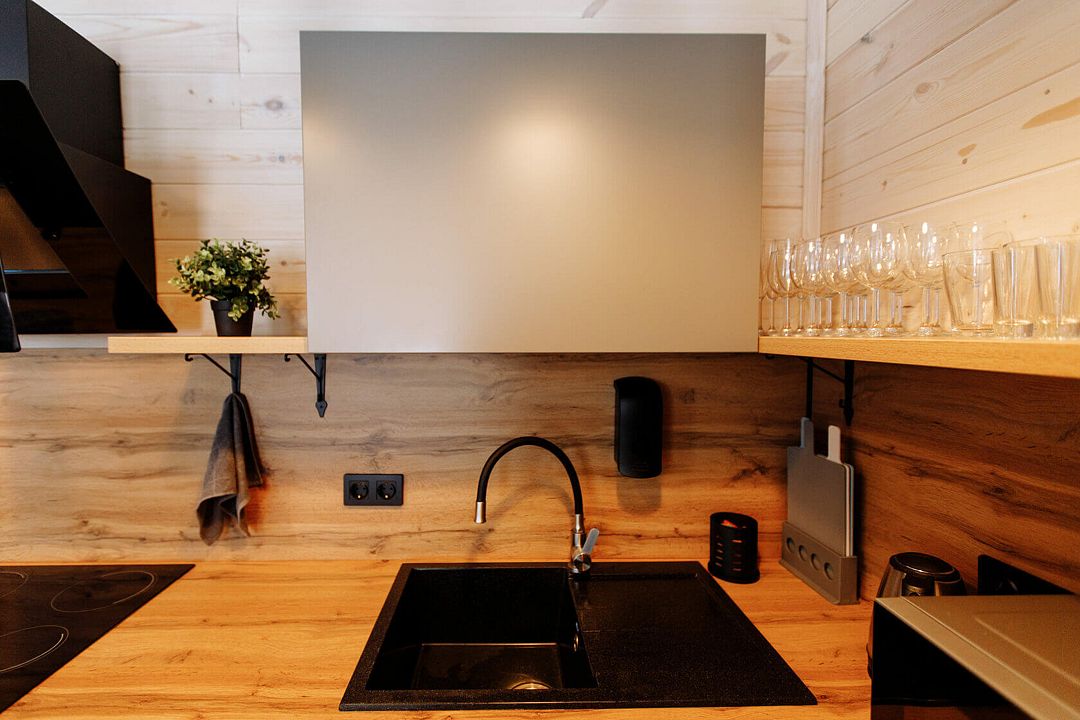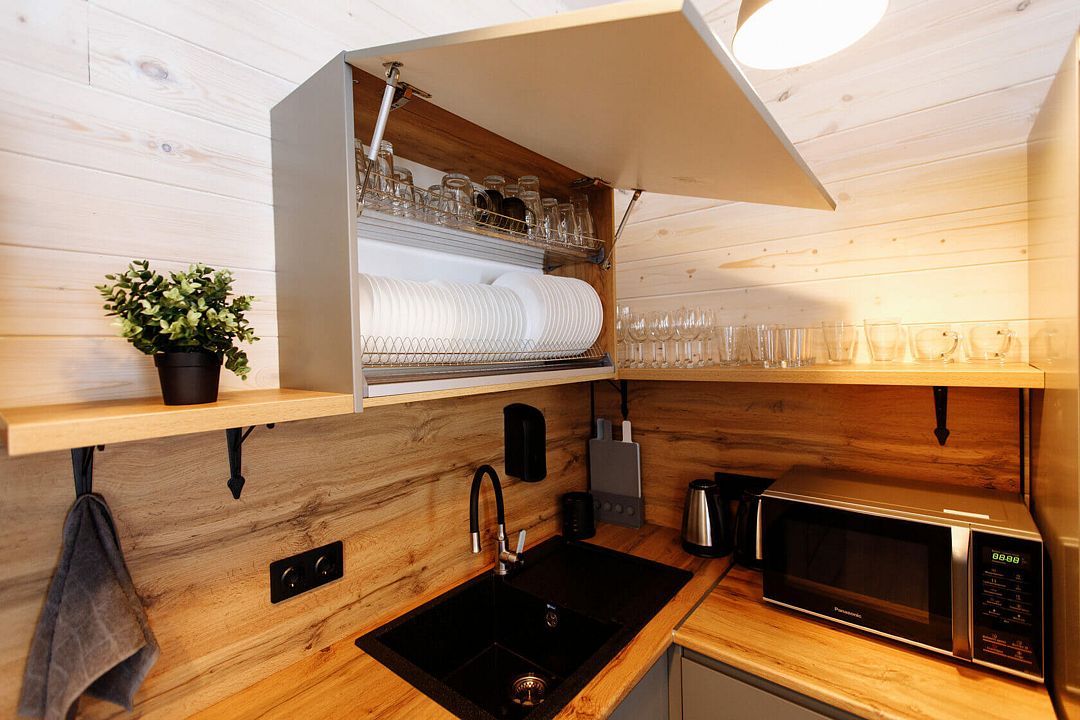 В коттедже имеется кухня со всей необходимой техникой и посудой для приготовления пищи. В комнатах имеются санузлы и туалетные принадлежности.