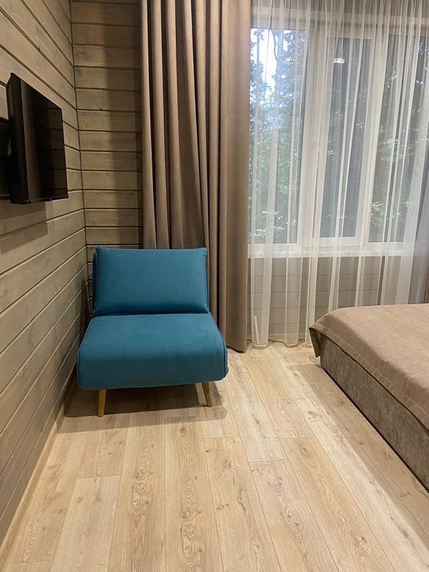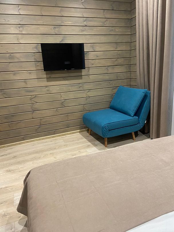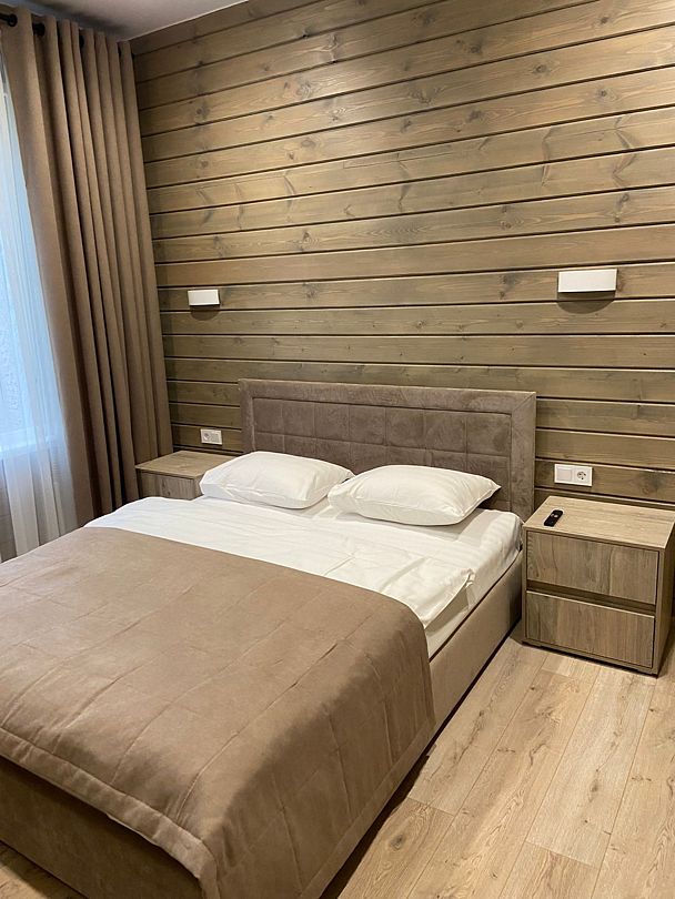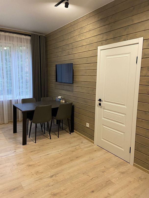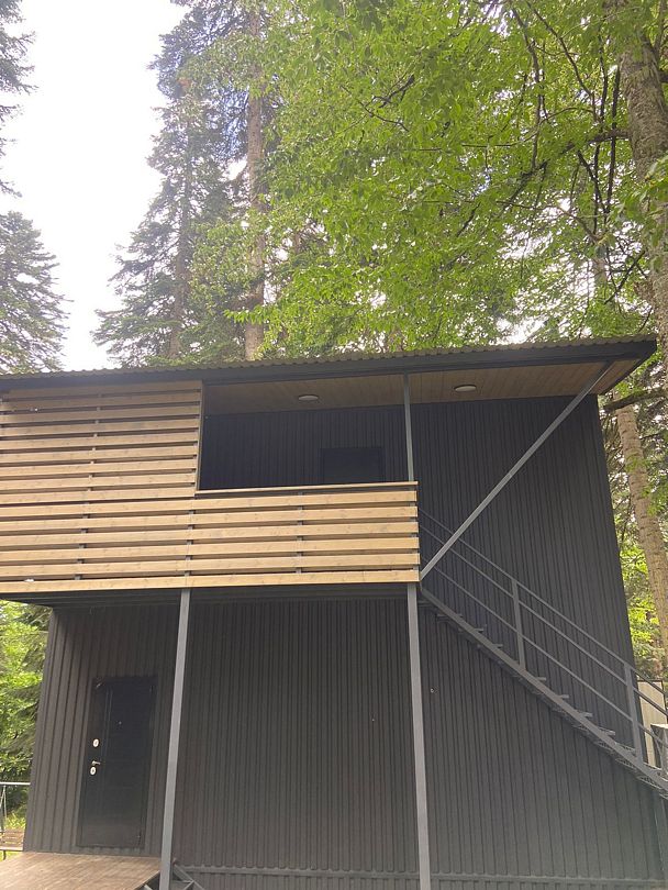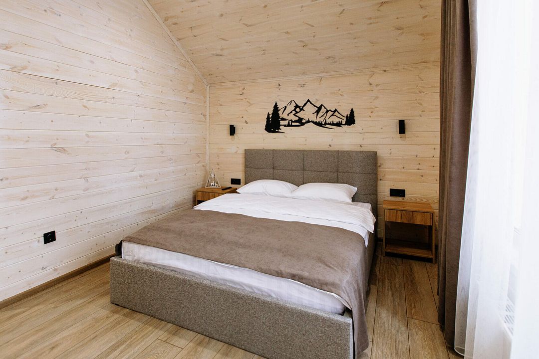 Двухкомнатный коттедж, рассчитанный на проживание до шести человек. В коттедже имеется кухня со всей необходимой посудой и техникой для приготовления пищи.