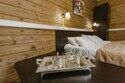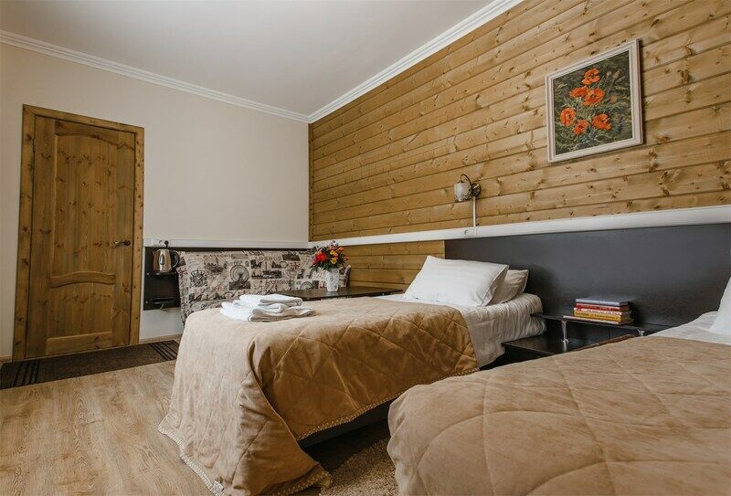 Номерной фонд представлен 4 комфортабельными для проживания категориями, каждая из которых оснащена звукоизоляцией, местом для хранения вещей, стульями, холодильником, электрическим чайником и телевизором. В собственной ванной комнате есть фен, тапочки и гигиенические принадлежности. Из окон открывается красивейший вид на горы. Дети до 11 лет размещаются на дополнительных местах бесплатно.