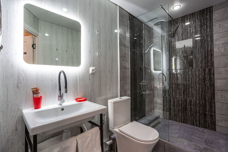 В доме один светлый, просторный санузел, в котором вы найдете полный комплект полотенец, фен, широкое зеркало с подсветкой и высококлассную органическую косметику из коллекции Arganica, на 100% изготовленной из биоразлагаемых материалов – что является нашим вкладом в сохранение окружающей среды.