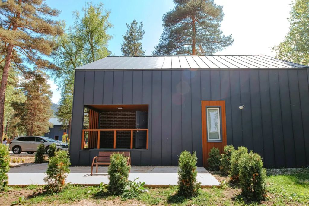 На террасе с видом на лес и горы можно любоваться закатом или собраться с друзьями за столом, самостоятельно приготовив ароматный шашлык на прилегающей мангальной зоне.