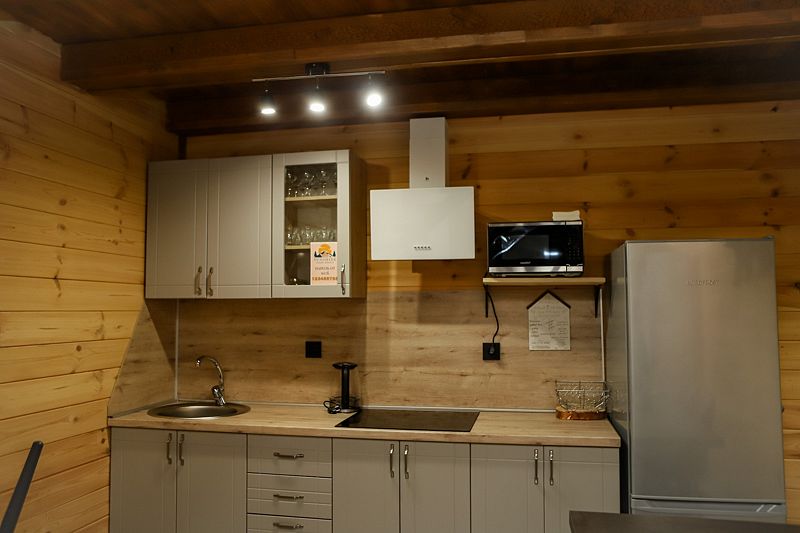 Так же в каждом шале есть такие мелочи-специи первой необходимости, соль/сахар, натуральный кофе и горный чай, ну и принадлежности к ним : турка, заварочный чайник. Во дворе есть уличный камин, детская площадка и беседка.