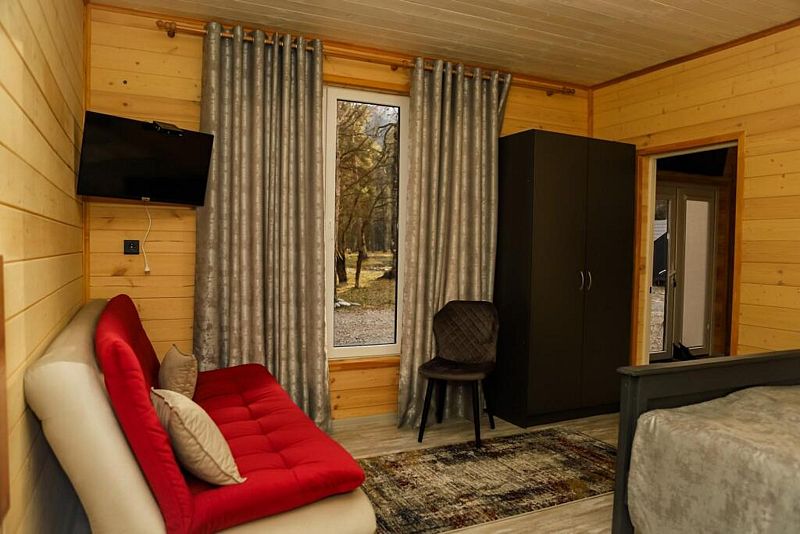 -телевизор, индивидуальный Wi-Fi у каждого домика;