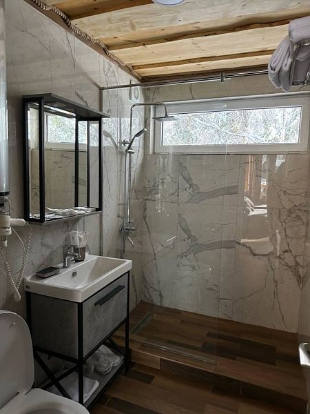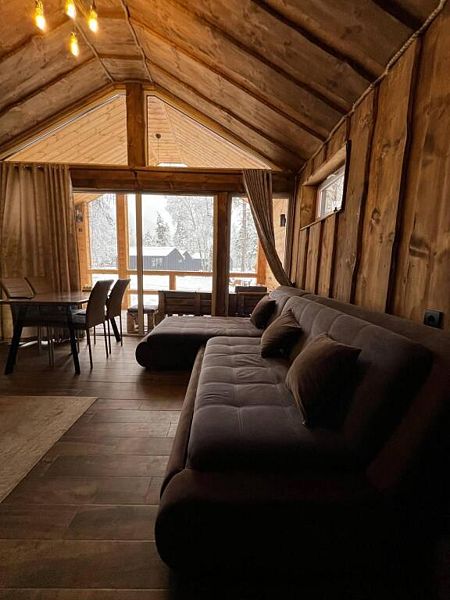 Но главным сокровищем базы отдыха являются ее великолепные виды на горы, лес и свежий воздух, которые способствуют идеальному отдыху. А еще здесь можно посетить уютную баню с прохладной купелью и соляными лампами для полного расслабления. Гости базы отдыха будут наслаждаться горным воздухом, живописной природой и комфортными условиями проживания, включая возможность готовить собственные блюда на просторной кухне.