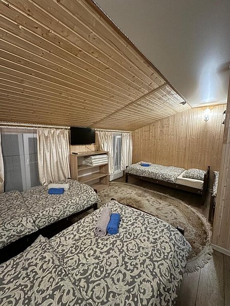 Для аренды доступны просторные номера на 2-6 человек, а также отдельные дома на 4 человека. Здания новой постройки, поэтому номера чистые и уютные.