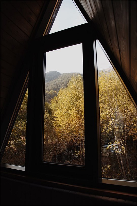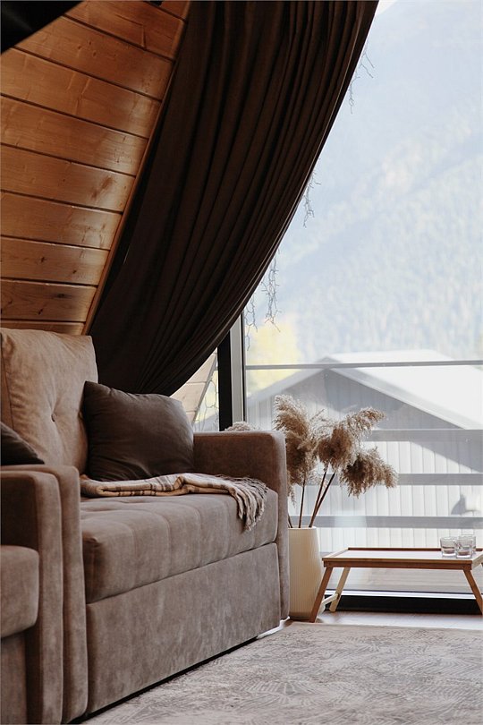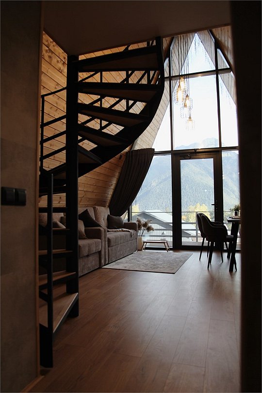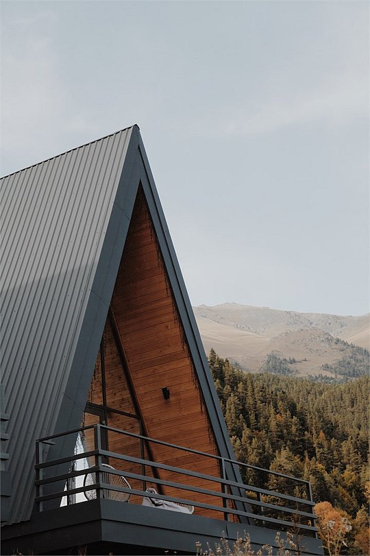 А-Фрейм с балконом и с красивым видом из окна