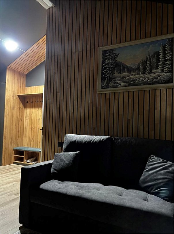 телевизор, Wi-Fi, холодильник, светильник, фен, микроволновая печь, утюг, душевая кабина, халаты, тапочки, косметические средства, двуспальная кровать, гладильная доска, кресла, зеркало, две комнаты, звуконепроницаемые стены и окна, набор посуды, чайник, мягкая мебель, стаканы, столовые приборы, мангал, цифровое тв, раскладной диван, мини-кухня, кухонный уголок, шкаф-купе, вид на горы, вид на лес, двуспальный раскладной диван-кровать, кофеварка, окна от пола до потолкаВ коттедже