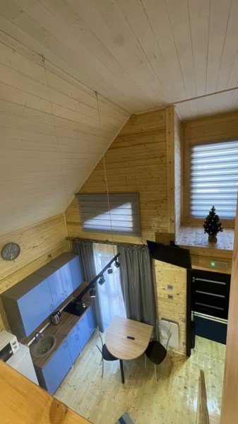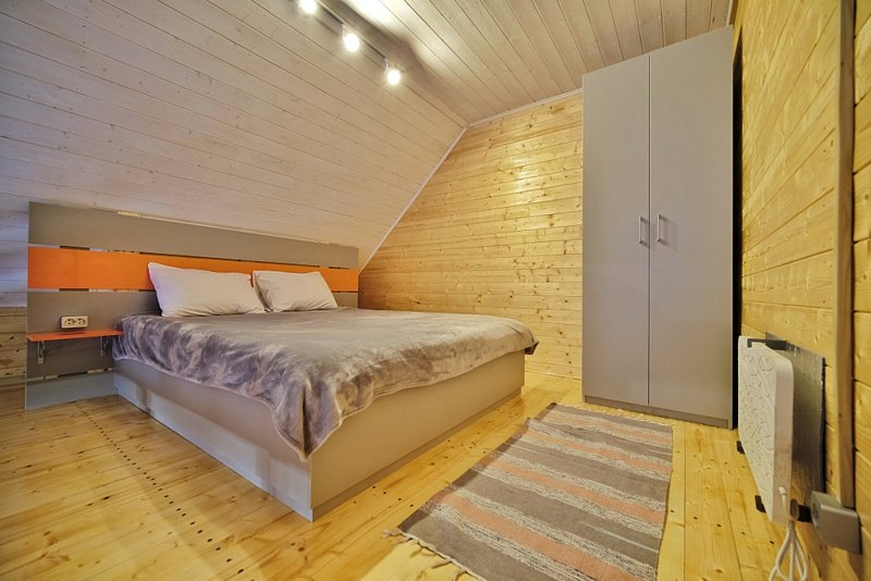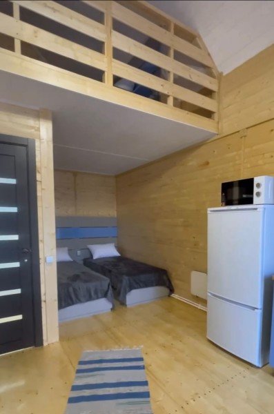 На втором – две спальни (в одной из них отличная двуспальная кровать, а в другой – две односпальных кровати). На втором есть этаже есть балкон, где вы можете с удовольствием утром пить кофе, а ночью любоваться звёздами. Здесь есть все, что необходимо для комфортного отдыха.