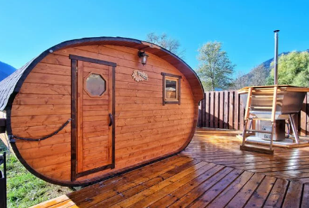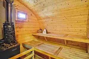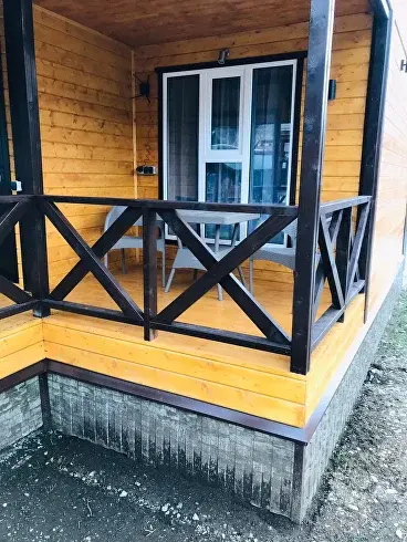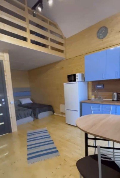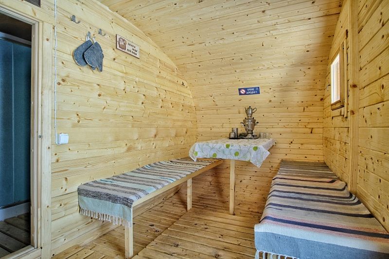 На территории располагаются несколько комфортабельных домиков с кухней, рассчитанных на размещение 7, 4 и 2 человек. Кухонная зона в домах оборудована бытовой техникой и набором посуды.