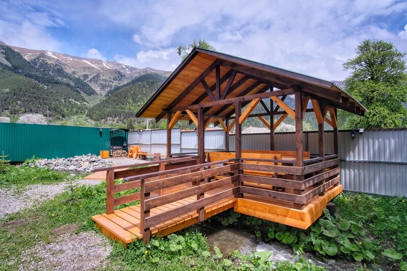 Можно неторопливо пить чай или кофе в беседке, с чудесным видом на горы.